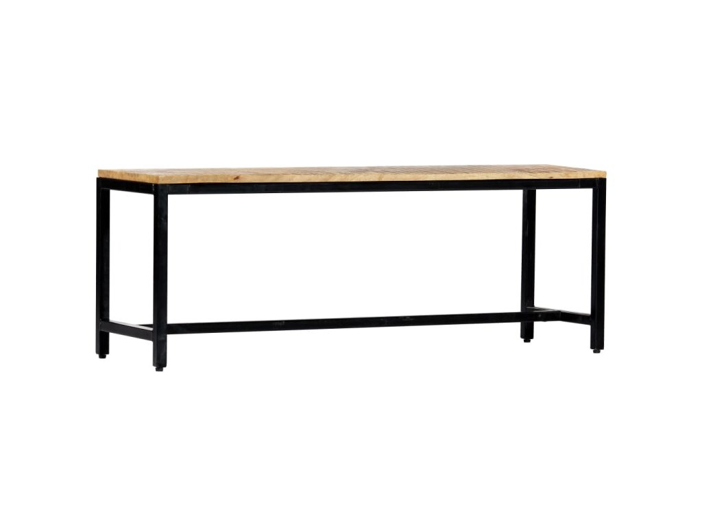 Vrchná časť lavice je vyrobená z masívneho surového mangového dreva a ľahko sa čistí vlhkou handričkou. Mangové drevo je husté a pevné tvrdé drevo s krásnymi hnedými alebo zlatými pruhmi a kontúrami na povrchu. Vďaka vynikajúcemu remeselnému spracovaniu a krásnej štruktúre dreva má každý kus tohto nábytku jedinečný charakter a je mierne odlišný od ostatných kusov. Každý krok výrobného procesu sa vykonáva s najväčšou starostlivosťou, či už ide o leštenie alebo lakovanie. Čierne železné nohy s práškovou povrchovou úpravou zvyšujú stabilitu lavičky a dodávajú jej priemyselné kúzlo.