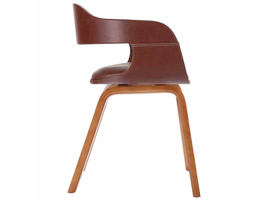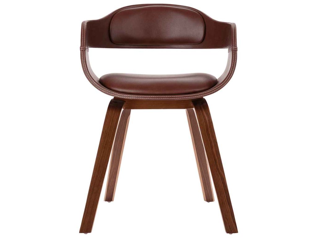 Jedálenská stolička má poťah z umelej kože, na ktorom sa dobre sedí a dá sa ľahko očistiť. Vďaka čalúnenému sedadlu a operadlu poskytuje táto príručná stolička maximálny komfort pri sedení. Vysokokvalitný rám a nohy z ohýbaného dreva stoličke dodávajú dostatočnú stabilitu a trvácnosť a zároveň dotvárajú jej štýlový vzhľad.