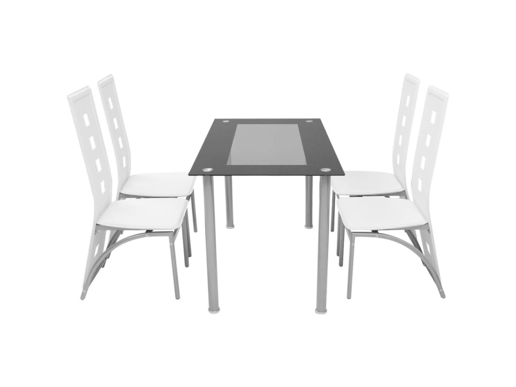 Táto moderná jedálenská súprava sa skladá z 5 kusov, má hladký dizajn a je ideálna pre každého, kto chce dodať svojmu interiéru šmrnc.