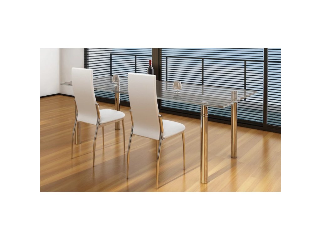 Táto sada 2 moderných jedálenských stoličiek má ergonomický dizajn, a tak poskytuje optimálny komfort pri sedení. Pohodlné jedálenské stoličky majú vysokokvalitnú a robustnú konštrukciu. Nohy sú vyrobené z pevného chrómu a sedadlo je vyhotovené z trvácnej umelej kože, ktorá sa dá ľahko očistiť.
