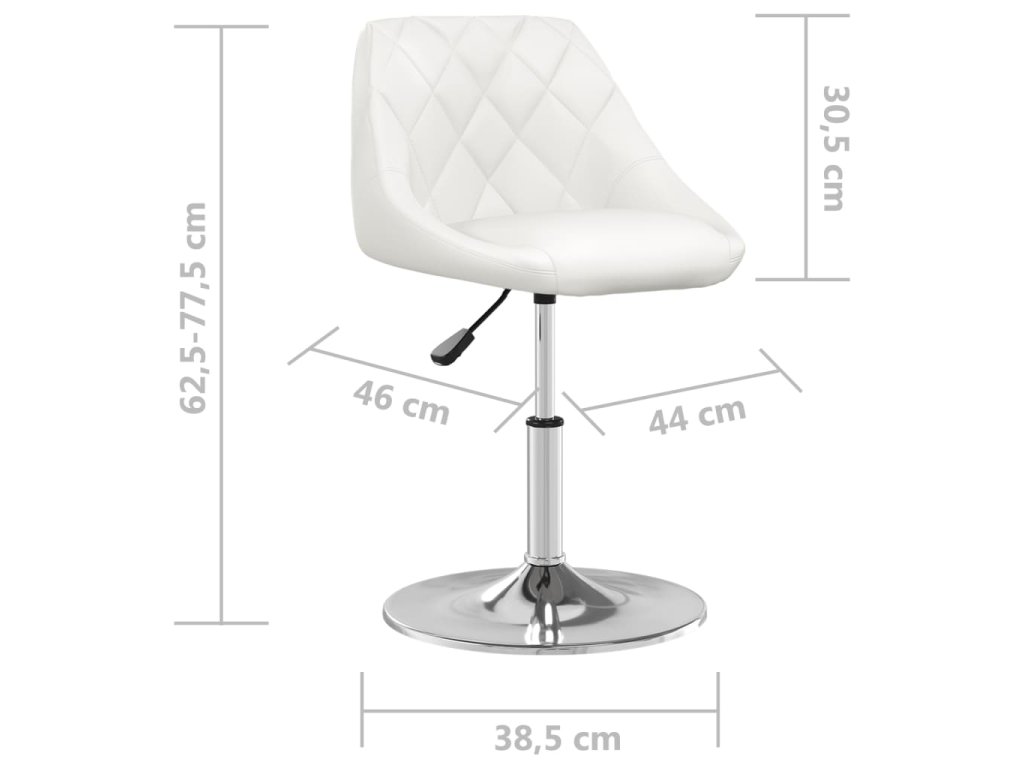 Jedálenská stolička je čalúnená umelou kožou, ktorá sa ľahko čistí a poskytne vám optimálne pohodlie pri sedení. Oceľová základňa s chrómovou povrchovou úpravou poskytuje vysokú odolnosť. Vďaka mechanizmu plynového piestu možno výšku stoličky nastaviť. Stolička bude dokonalým doplnkom každého funkčného baru alebo jedálne. Môže sa tiež otáčať o 360 stupňov pre neuveriteľnú flexibilitu.