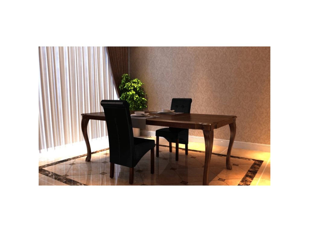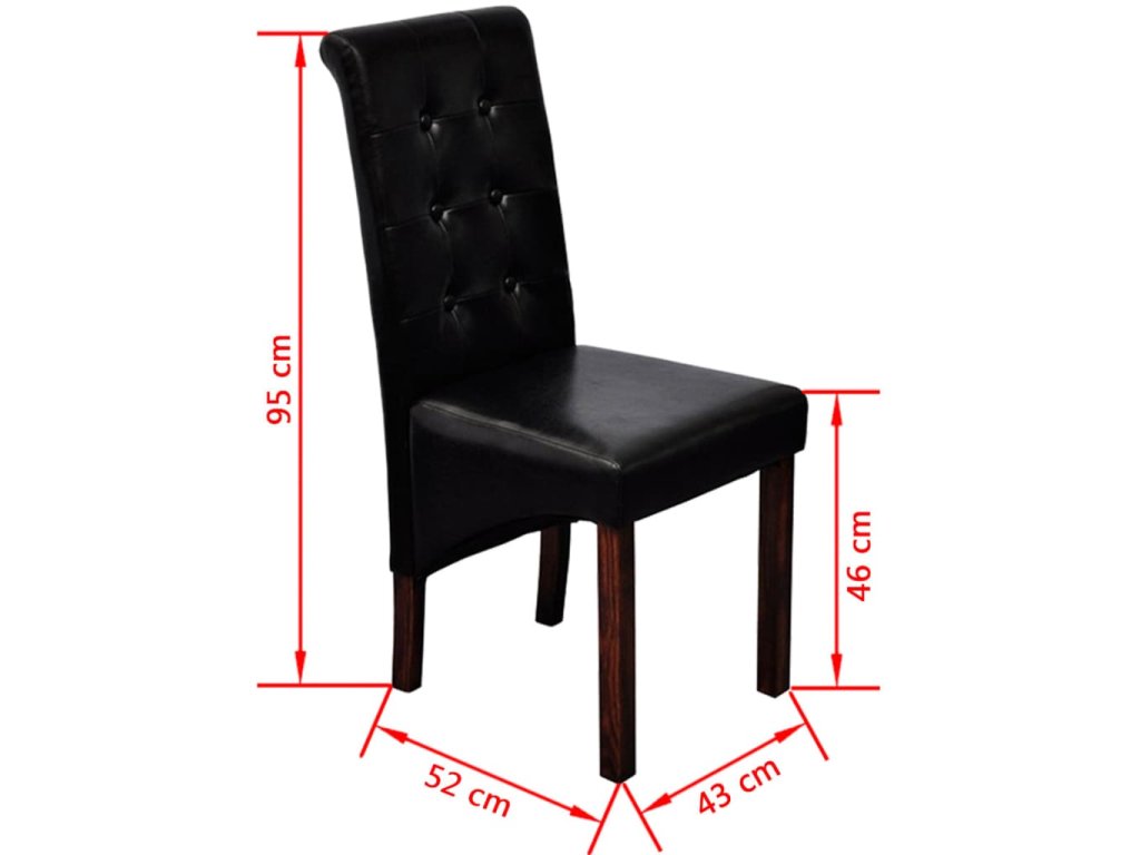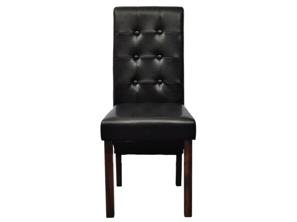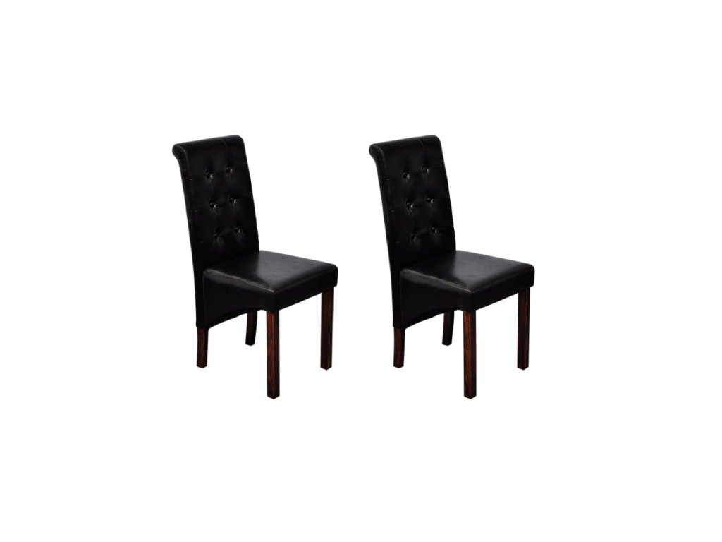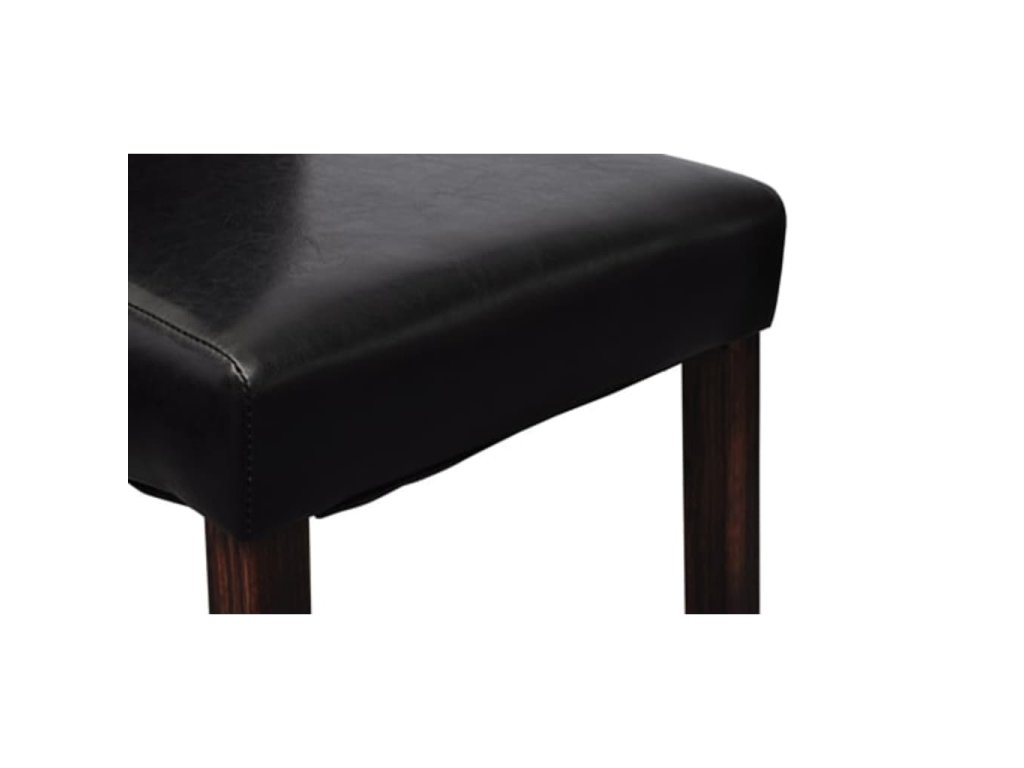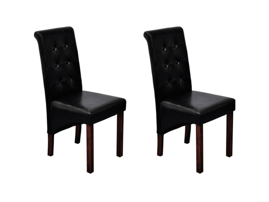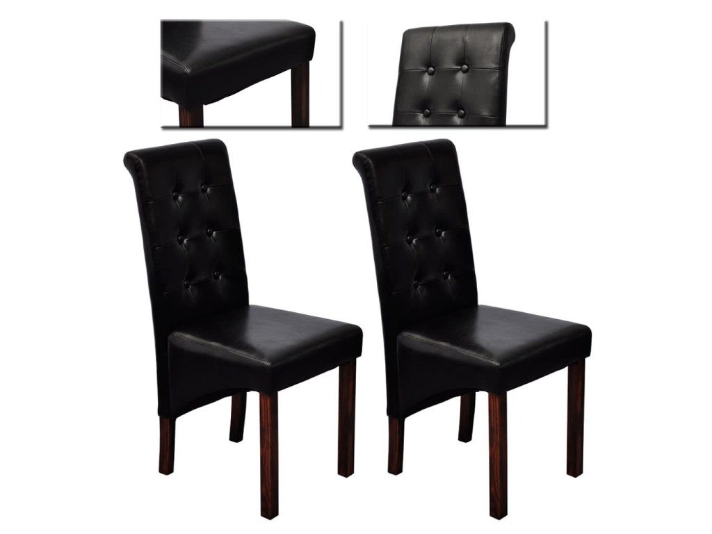 Táto sada pozostáva z 2 pohodlných jedálenských stoličiek s ergonomicky tvarovanými sedadlami a operadlami. Stoličky si nevyžadujú náročnú údržbu. Sedadlá a operadlá sú čalúnené trvácnou syntetickou kožou. Nohy sú vyrobené z dreveného masívu s tmavohnedým lakom a majú zaoblené okraje pre väčšiu bezpečnosť.