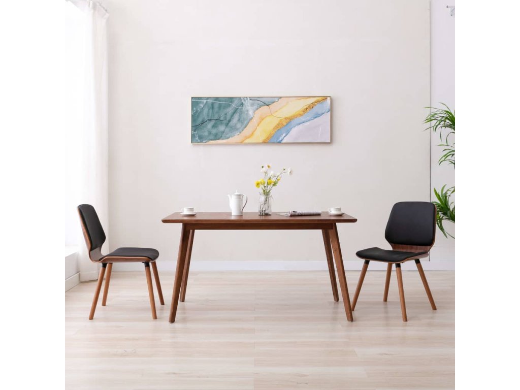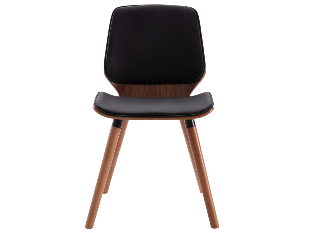 Každá stolička je husto polstrovaná a čalúnená ľahko čistiteľnou umelou kožou, ktorá poskytuje optimálne pohodlie. Robustný drevený rám má elegantný a moderný dizajn, ktorý stoličke dodáva jedinečný štýl. 4 drevené nohy sú pevné a stabilné. Ergonomický dizajn sedadla a operadla zvyšuje úroveň pohodlia stoličiek.