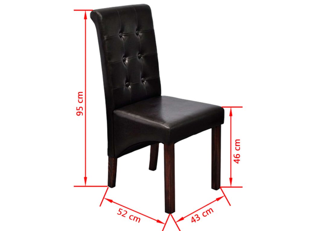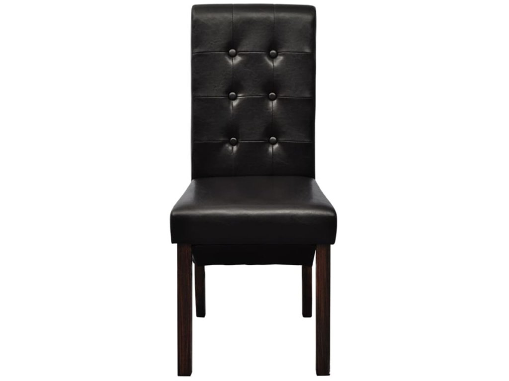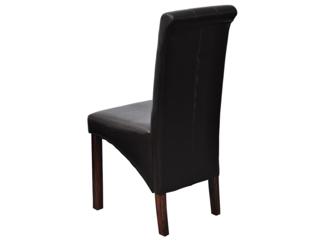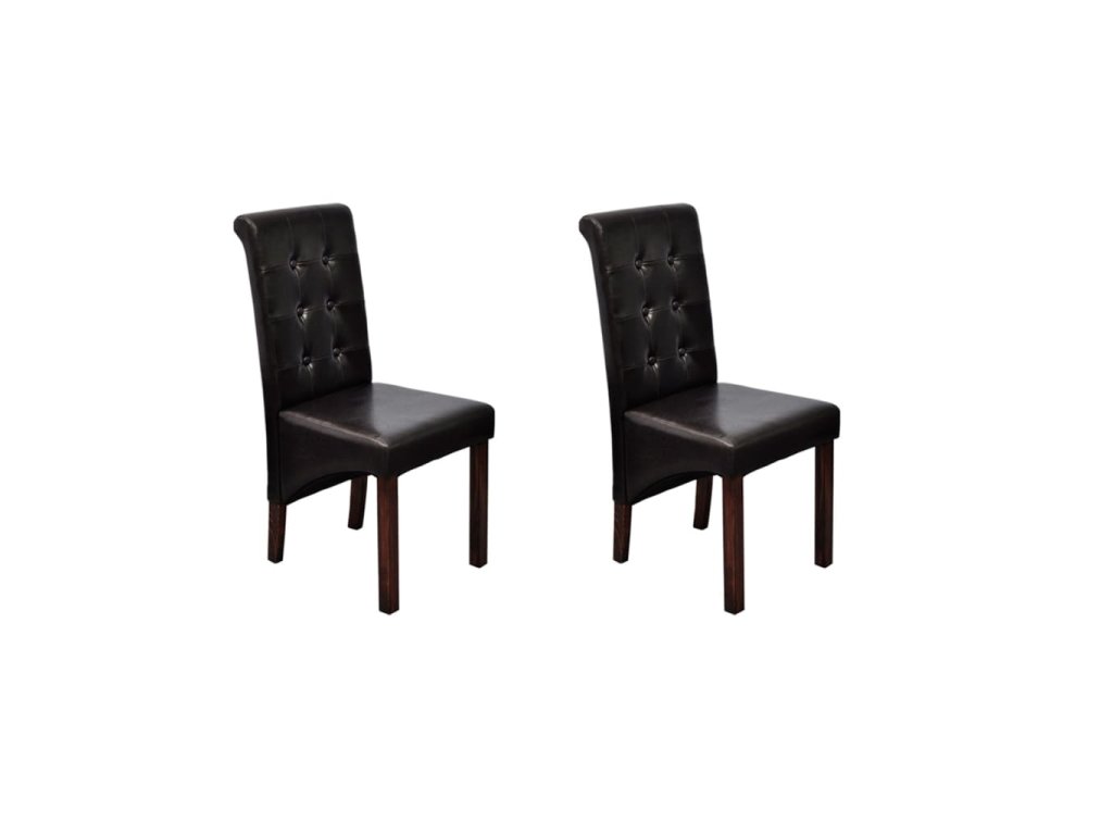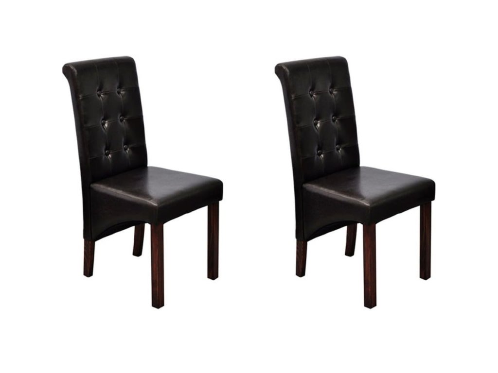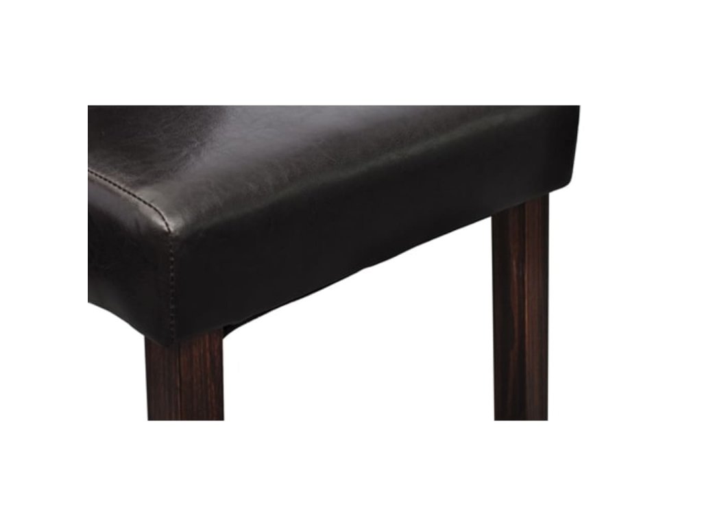 Táto sada pozostáva z 2 pohodlných jedálenských stoličiek s ergonomicky tvarovanými sedadlami a operadlami. Stoličky si nevyžadujú náročnú údržbu. Sedadlá a operadlá sú čalúnené trvácnou syntetickou kožou. Nohy sú vyrobené z dreveného masívu s tmavohnedým lakom a majú zaoblené okraje pre väčšiu bezpečnosť.