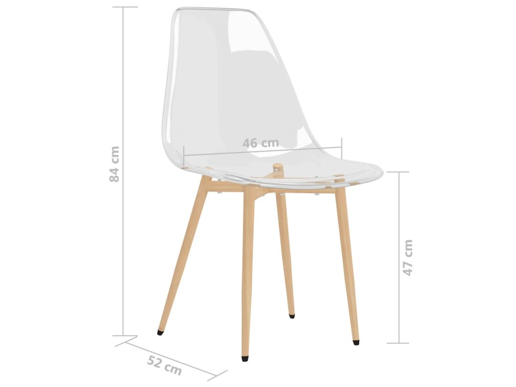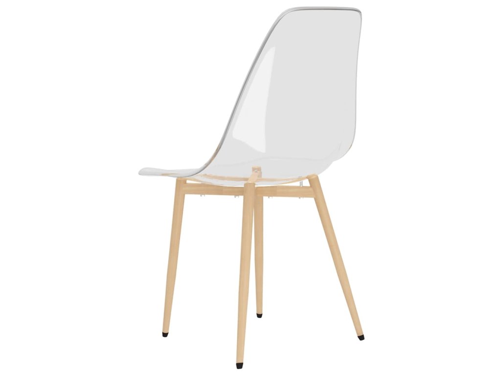 Jedálenská stolička má priehľadný sedák s hladkými líniami, vďaka ktorým má výnimočný vzhľad. Tieto jedálenské stoličky sú vyrobené z PET, vďaka čomu sa ľahko čistia. Kovové nohy dodávajú kuchynským stoličkám dodatočnú pevnosť. Stolička je navrhnutá s ergonomicky zakriveným operadlom, ktoré zaručuje maximálne pohodlie pri sedení. Podložky pod nohy zabraňujú poškriabaniu podlahy a zároveň dodávajú dodatočnú stabilitu.