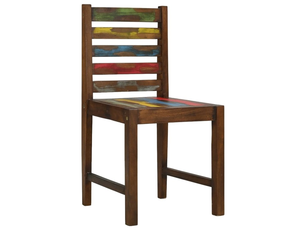 Stoličky sú ručne vyrobené z masívneho recyklovaného dreva, kombinácie regenerovaných drevín vrátane tíku, mangovníkového dreva, borovicového dreva, buku atď. Tieto drevá sa recyklujú zo starých budov, ako sú továrne, kôlne či lode. Vďaka tomu predstavujú fantastické možnosti výroby nábytku šetrné k životnému prostrediu. Keďže je každý kus ručne vyrobený, farby sa líšia v mnohých odtieňoch modrej, zelenej, červenej a žltej. Vďaka tomu je každý kus jedinečný!