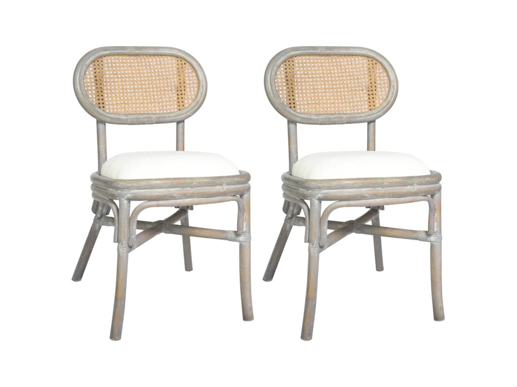 Stoličky sú vyrobené z prírodného ratanu, vďaka čomu sú odolné a ľahko sa čistia. Mäkký vankúš poskytuje pohodlie a tiež pomáha uvoľniť telo po náročnom dni. Ergonomicky navrhnutá stolička ponúka vynikajúcu oporu a bude vašim dobrým spoločníkom na príjemné popoludnie.