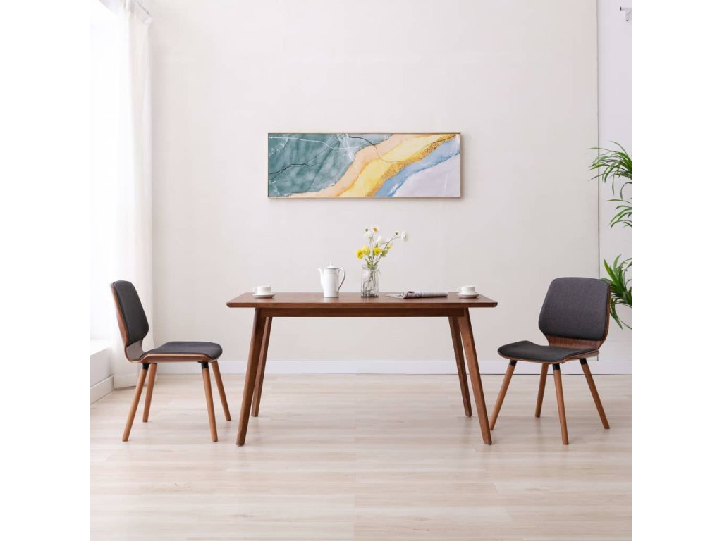 Každá stolička je husto polstrovaná a čalúnená jemnou látkou, ktorá poskytuje optimálne pohodlie. Robustný drevený rám má elegantný a moderný dizajn, ktorý stoličke dodáva jedinečný štýl. 4 drevené nohy sú pevné a stabilné. Ergonomický dizajn sedadla a operadla zvyšuje úroveň pohodlia stoličiek.