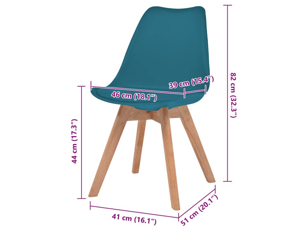 Stoličky majú ergonomicky tvarované sedadlo a integrované operadlo s moderným zaobleným dizajnom. Vstavané podložky na sedadlo z umelej kože poskytujú optimálne pohodlie. Krásne stoličky stoja na pevných nohách z dreveného masívu, vďaka čomu sú naozaj stabilné a trvácne. Montáž je veľmi jednoduchá.