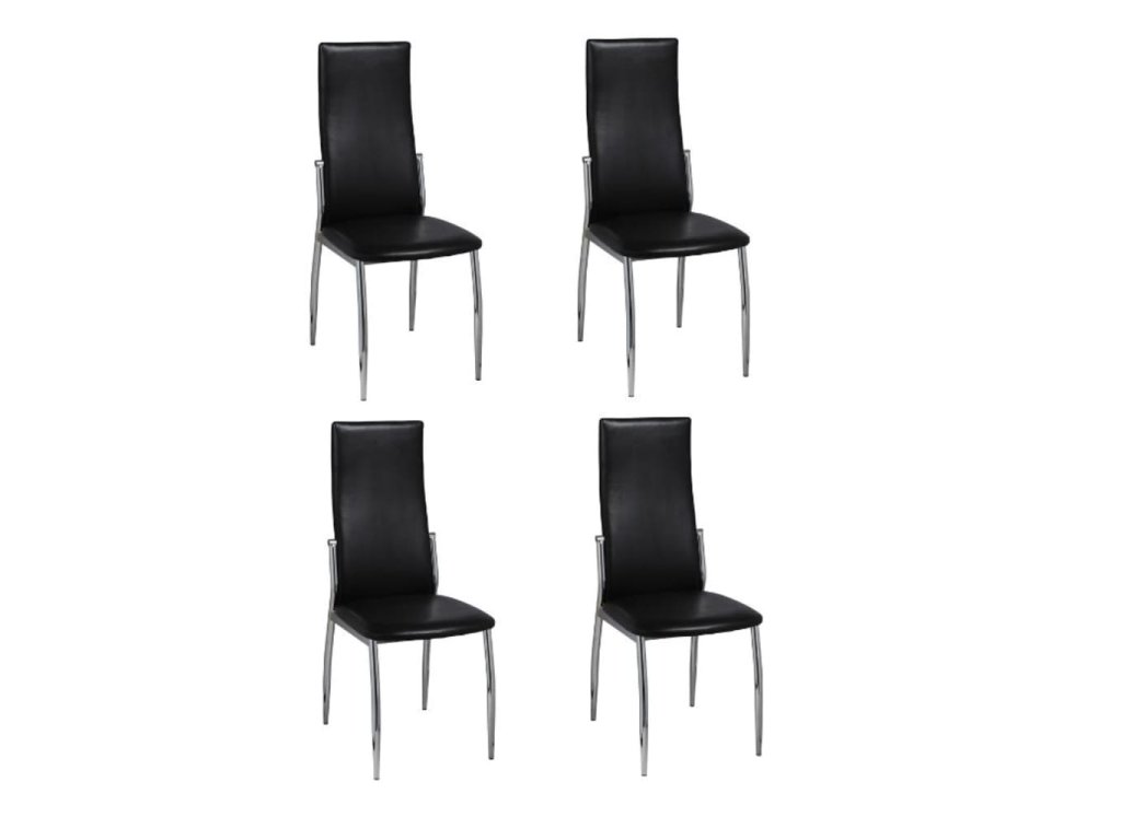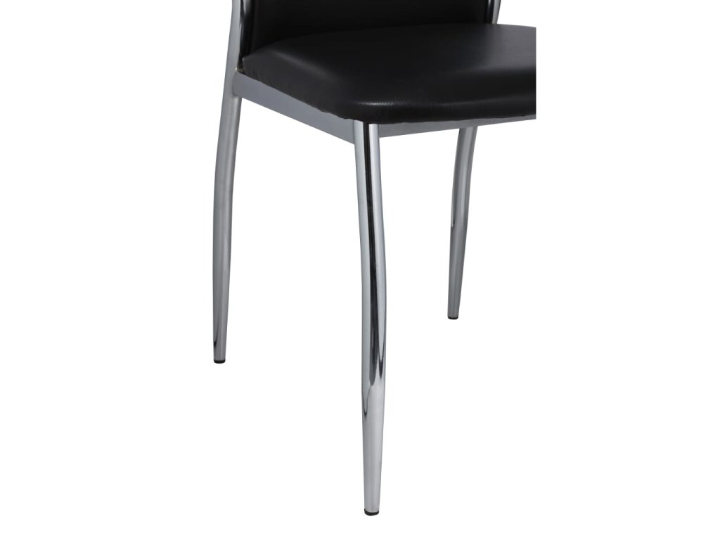 Táto sada 4 moderných jedálenských stoličiek má ergonomický dizajn, a tak poskytuje optimálny komfort pri sedení. Pohodlné jedálenské stoličky majú vysokokvalitnú a robustnú konštrukciu. Nohy sú vyrobené z pevného chrómu a sedadlo je vyhotovené z trvácnej umelej kože, ktorá sa dá ľahko očistiť.