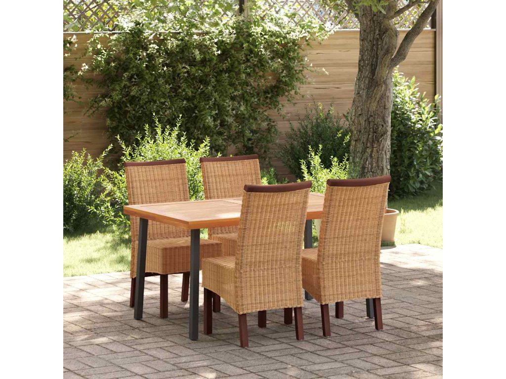 Sada jedálenských stoličiek z pravého ratanu s exotickým vzhľadom a ozdobným lemom z dreveného masívu predstavuje ideálny doplnok do interiéru. Rám z tvrdého dreva v kombinácii s pravým ratanom dodáva tomuto výrobku nielen výbornú stabilitu, ale aj estetický vzhľad.
