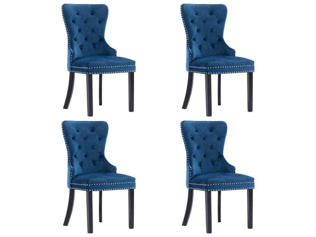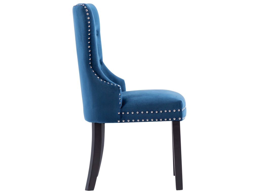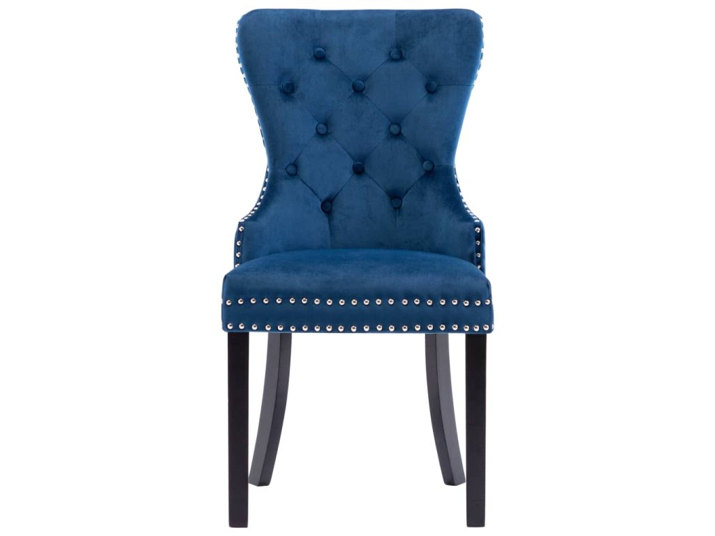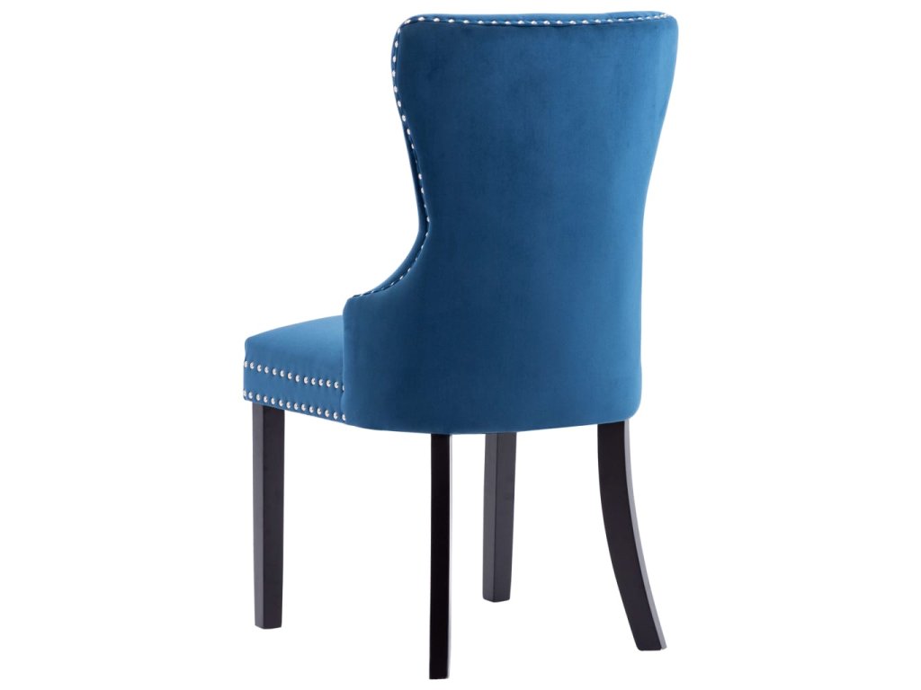 Tieto jedálenské stoličky, čalúnené zamatovou látkou príjemnou na dotyk, poskytujú pohodlné miesto pre stolovanie, čítanie alebo len pre oddych. Dekoratívny gombík na operadle a kovové nity pozdĺž okrajov dodávajú stoličke klasickú krásu. Jedálenské sedačky majú pevné nohy z kaučukovníkového dreva a sú stabilné a pevné.