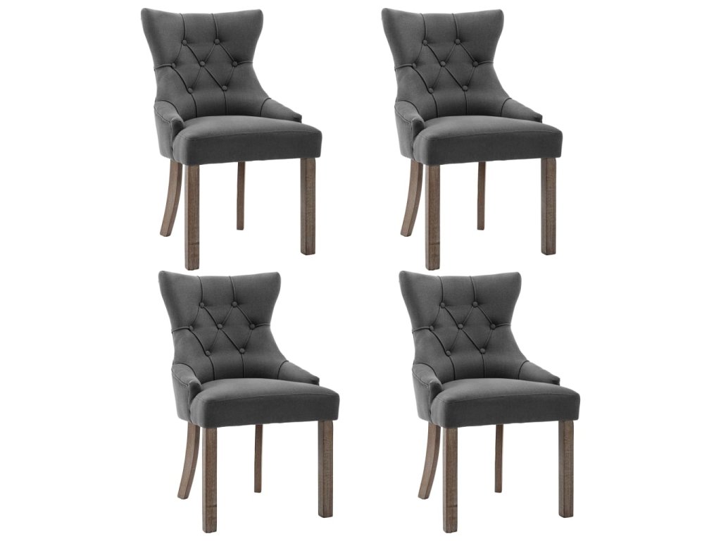 Jedálenské stoličky sa vďaka krásnemu dizajnu s prešívanými gombíkmi na operadlách zaručene stanú pôsobivým doplnkom do každej miestnosti. Kuchynské stoličky majú mäkký látkový poťah, vďaka čomu sa vám na nich bude sedieť naozaj pohodlne. Stoličky so sedadlami s hustou výplňou a zaoblenými operadlami vám poskytnú optimálny komfort. Pevné nohy z kaučukového dreva jedálenským stoličkám navyše prinášajú potrebnú stabilitu a vynikajúcu trvácnosť.