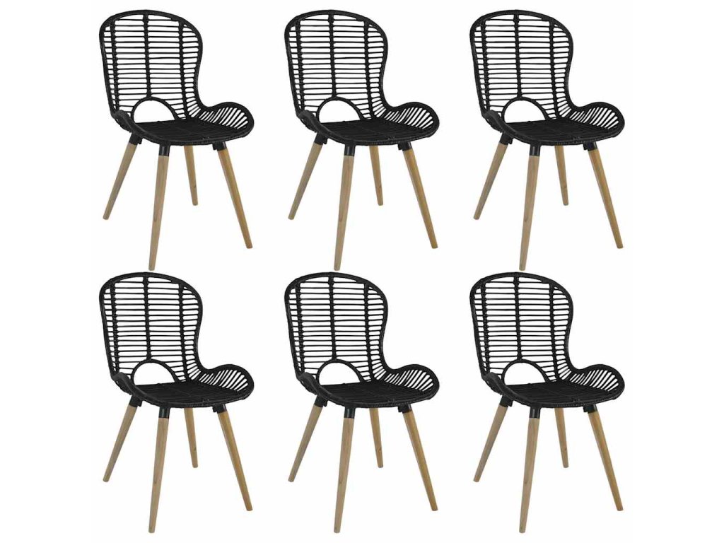 Sedadlá a operadlá z prírodného ratanu sú vodovzdorné a dajú sa ľahko očistiť. Drevené nohy zaručujú dostatočnú stabilitu a trvácnosť súpravy a zároveň jej dodávajú vintage vzhľad. Stoličky sa budú hodiť do akýchkoľvek priestorov a dajú sa jednoducho zmontovať. V balení sa nachádza 6 jedálenských stoličiek.