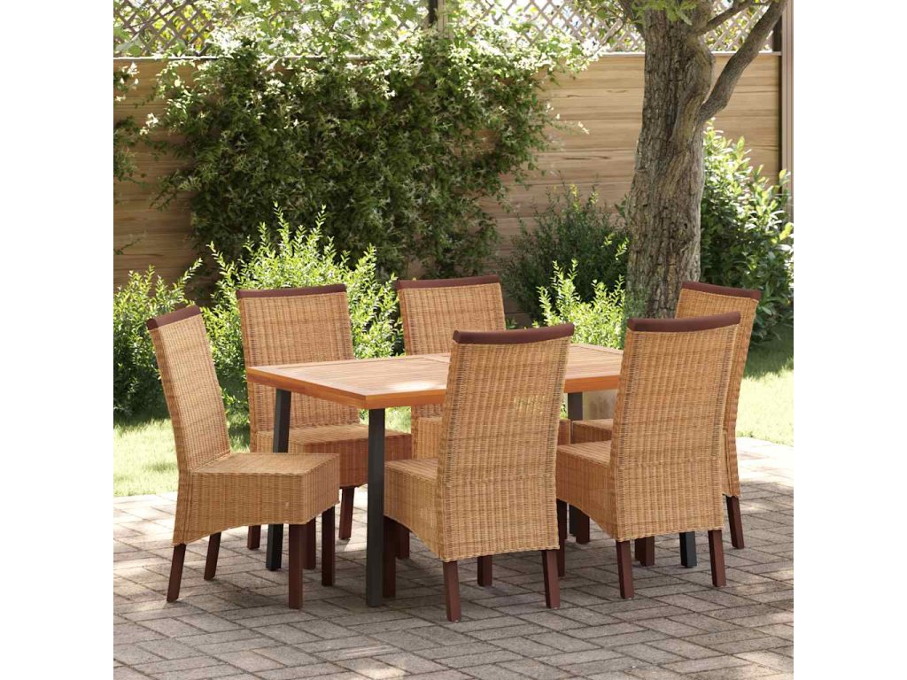 Sada jedálenských stoličiek z pravého ratanu s exotickým vzhľadom a ozdobným lemom z dreveného masívu predstavuje ideálny doplnok do interiéru. Rám z tvrdého dreva v kombinácii s pravým ratanom dodáva tomuto výrobku nielen výbornú stabilitu, ale aj estetický vzhľad.