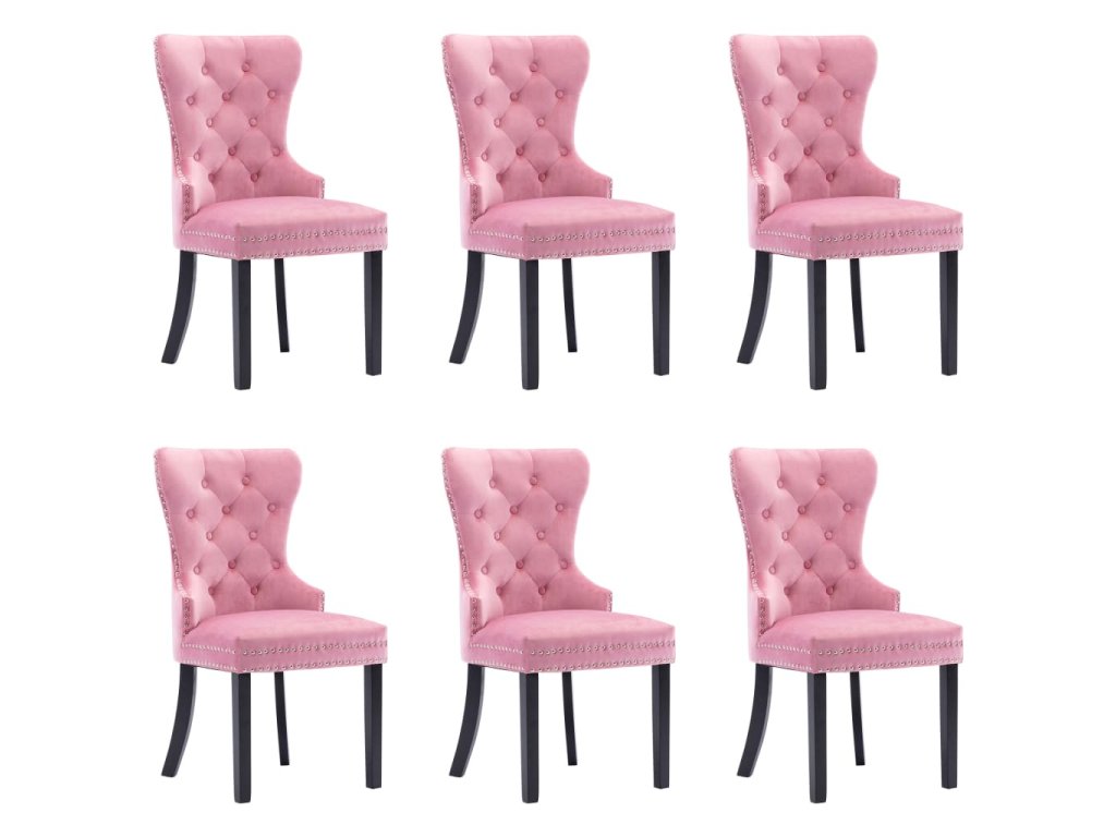 Tieto jedálenské stoličky, čalúnené zamatovou látkou príjemnou na dotyk, poskytujú pohodlné miesto pre stolovanie, čítanie alebo len pre oddych. Dekoratívny gombík na operadle a kovové nity pozdĺž okrajov dodávajú stoličke klasickú krásu. Jedálenské sedačky majú pevné nohy z kaučukovníkového dreva a sú stabilné a pevné.
