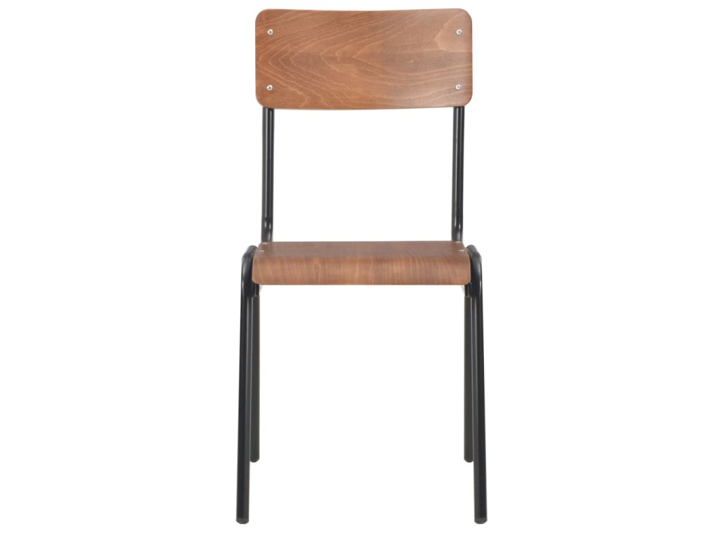Jedálenské stoličky sú vyrobené z preglejky, vďaka čomu sú veľmi pevné, odolné a ľahko sa čistia vlhkou handričkou. Oceľové nohy s práškovou povrchovou úpravou dodávajú stoličkám extra stabilitu. Okrem toho sú stoličky stohovateľné, aby sa ušetril úložný priestor, keď sa nepoužívajú.