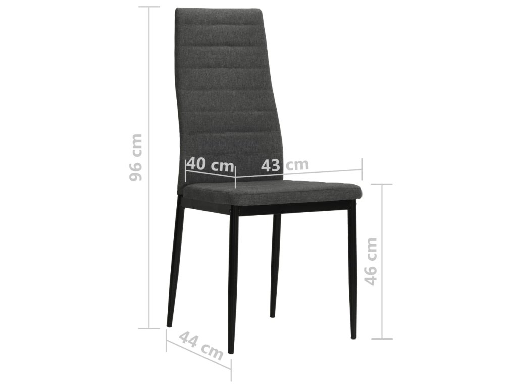 Stoličky majú pevný oceľový rám a sú potiahnuté vysokokvalitnou polyesterovou látkou, ktorá je mäkká a trvácna. Vďaka sedadlám a operadlám s hustou výplňou a ergonomickým dizajnom sú tieto jedálenské stoličky skutočne pohodlné. Stoličky sa jednoducho montujú.