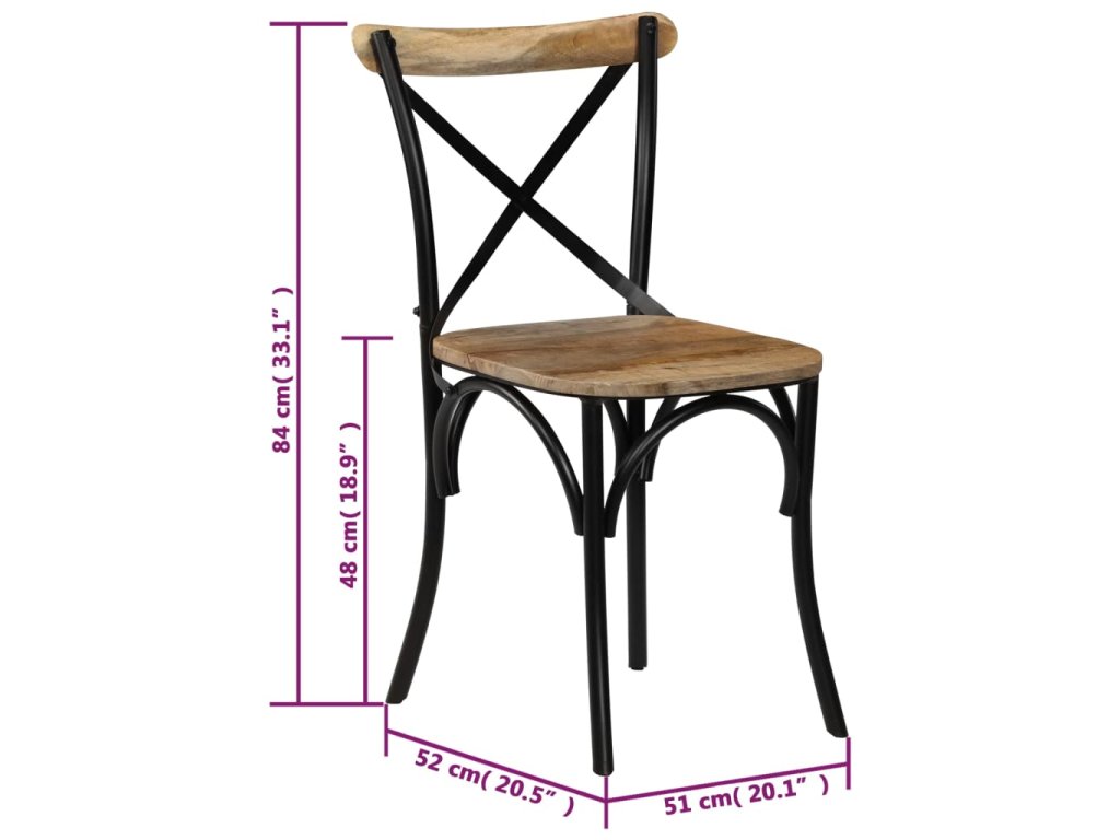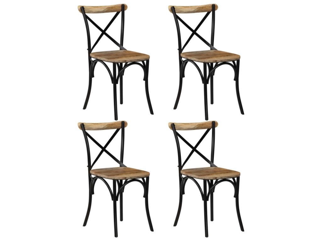 Táto 4-dielna jedálenská súprava stoličiek z mangovníkového dreva v antickom štýle predstavuje jedinečný doplnok, ktorý pritiahne pozornosť. Oceľové rámy dodávajú stoličkám značnú stabilitu a pevnosť.