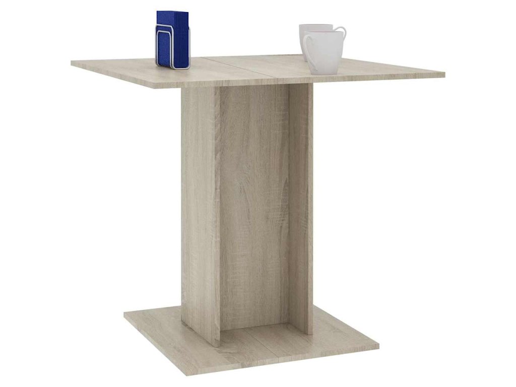 Jednoduchá elegancia jedálenského stola dodá každému stolovaniu slávnostnú atmosféru. Tento jedálenský stôl je vyrobený z pevného kompozitného dreva so širokou štvorcovou základňou, vďaka čomu je mimoriadne stabilný a trvácny. Keď si budete chcieť cez víkend pozvať hostí na rodinnú večeru alebo pripraviť menšie posedenie pre susedov, tento krásny jedálenský stôl sa vám určite zíde. Jedálenský stôl sa navyše dá veľmi ľahko očistiť vlhkou handričkou.