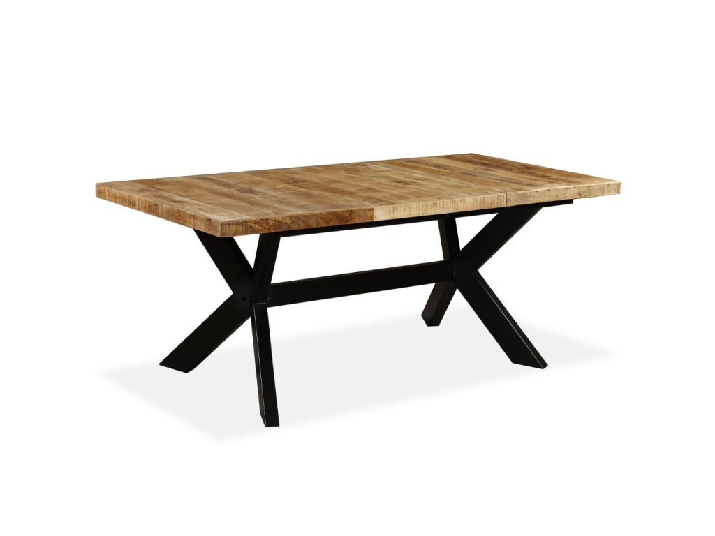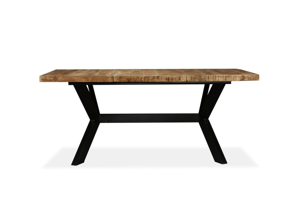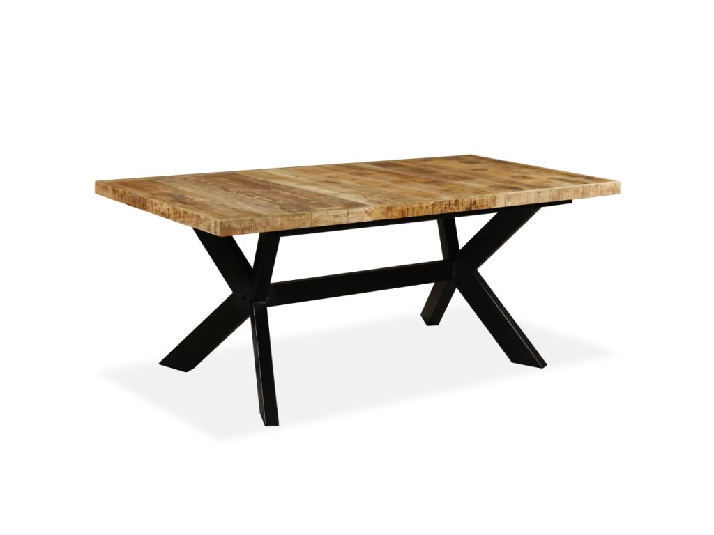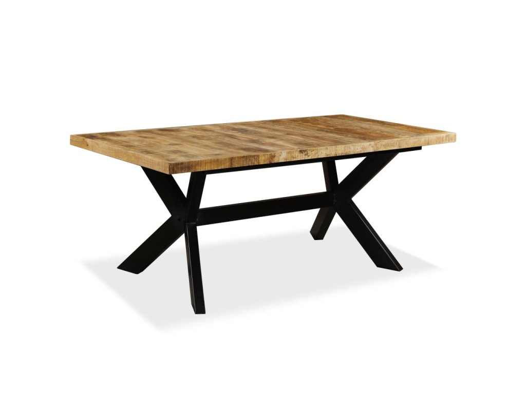 Jedálenský stôl s drsným povrchom je vyrobený z mangového masívu, ktorý je stabilný, trvácny a krásny a remeselné opracovanie len umocňuje jeho pôsobivý retro štýl. Jedálenský stôl je ručne vyrobený a každý krok výrobného procesu sa vykonáva s najväčšou starostlivosťou, či už je to leštenie alebo lakovanie. Oceľové nohy spolu s oceľovým priečnym rámom len zvýrazňujú jeho industriálny vzhľad a zároveň mu dodávajú potrebnú stabilitu.
