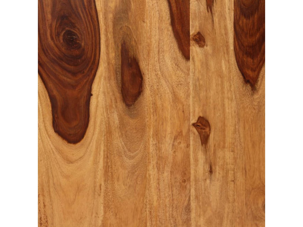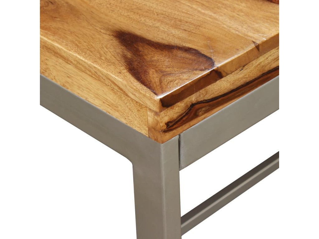 Stôl je vyrobený z masívneho akáciového dreva. Akáciaové drevo, tiež známe aj ako ružové drevo alebo palisander, je tropické tvrdé drevo, ktoré sa vyznačuje bohatou zrnitou štruktúrou. Krásna štruktúra zaisťuje, že je každý kus nábytku jedinečný a trochu odlišný od iných kusov. Je ručne vyrobený a každý krok procesu výroby sa vykonáva s najväčšou starostlivosťou, či už je to leštenie, natieranie alebo lakovanie. Vďaka základni a nohám z práškovej ocele je stolík pevný a trvácny. Montáž je jednoduchá.
