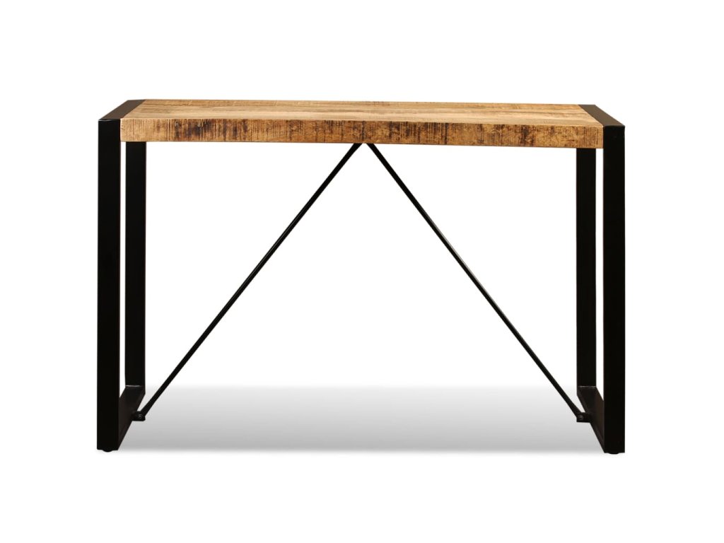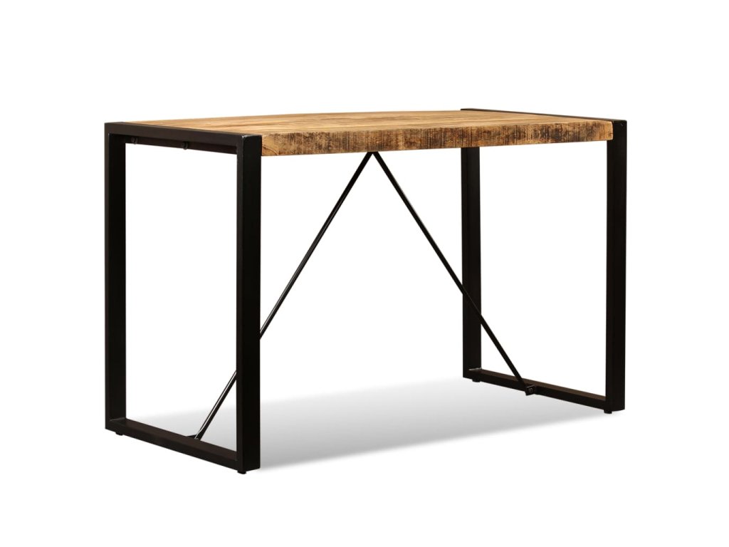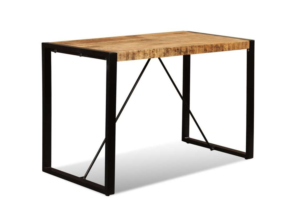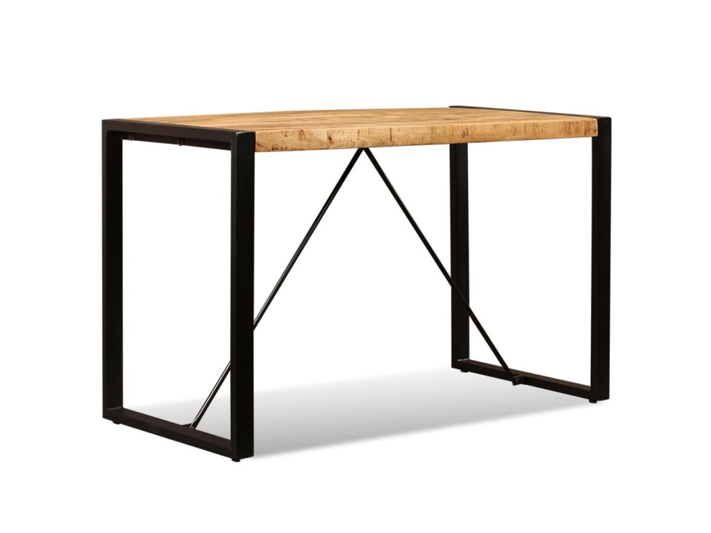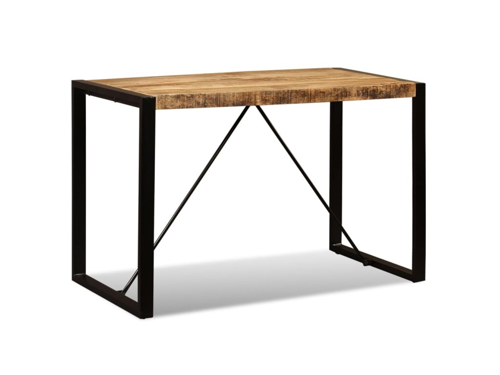 Tento jedálenský stôl je vyrobený zo surového mangového masívu, ktoré je stabilné, trvácne a krásne a jeho remeselné opracovanie mu dodáva pôsobivý retro dizajn. Oceľové nohy ešte viac umocňujú priemyselný štýl. Proces výroby sa v každom kroku uskutočňuje s maximálnou starostlivosťou, či už ide o leštenie alebo lakovanie. Montáž je jednoduchá.