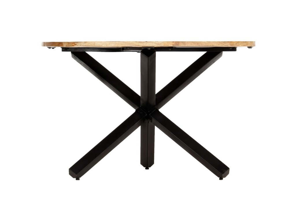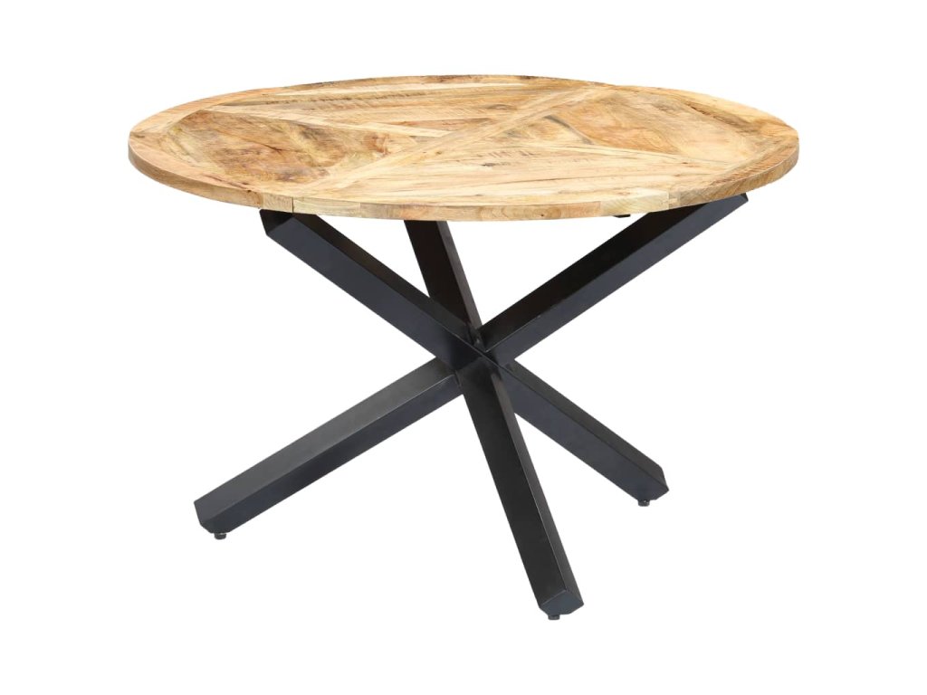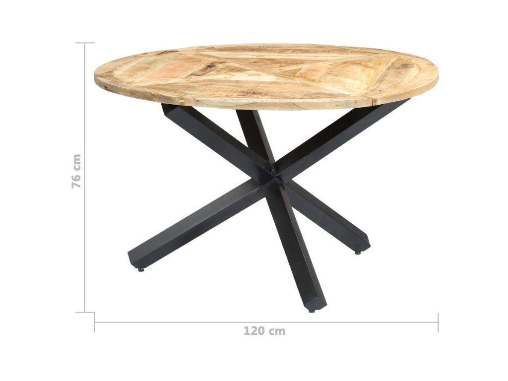 Tento jedálenský stôl je vyrobený z mangového masívu, vďaka čomu je veľmi stabilný a trvácny. Mangové drevo je husté a robustné tvrdé drevo, ktoré má na svojom porvchu krásne hnedé alebo zlatisté prúžky a kresby. Každý krok výrobného procesu sa vykonáva s najväčšou starostlivosťou, či už je to leštenie, natieranie alebo lakovanie. Pevná základňa tvorená 3 železnými nohami s práškovou povrchovou úpravou stolu dodáva extra stabilitu.