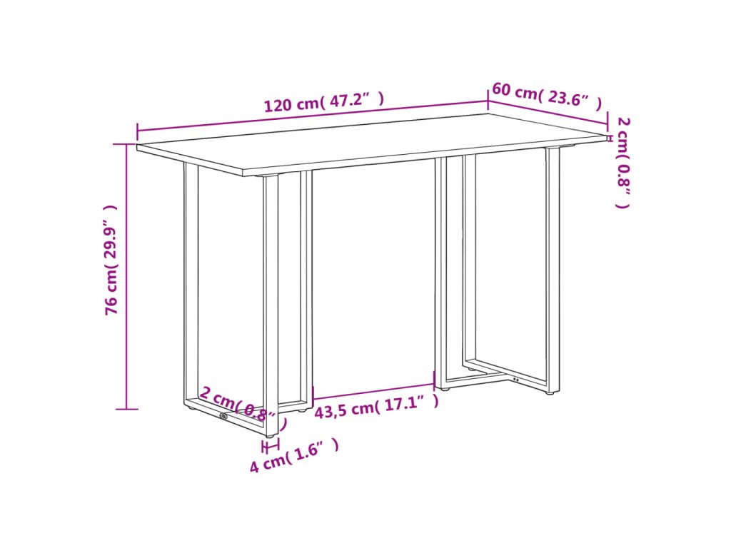 Jedálenský stôl je vyrobený z masívneho mangovníkového dreva. Je to drevo tropického listnatého stromu, ktoré je dostatočne pevné na to, aby unieslo aj značnú hmotnosť, no zároveň odoláva každodennému opotrebovaniu. Vďaka vynikajúcemu remeselnému spracovaniu a krásnej textúre dreva je každý stôl trochu odlišný od ostatných kusov. Nohy z práškovaného železa mu dodávajú stabilitu a pevnosť.