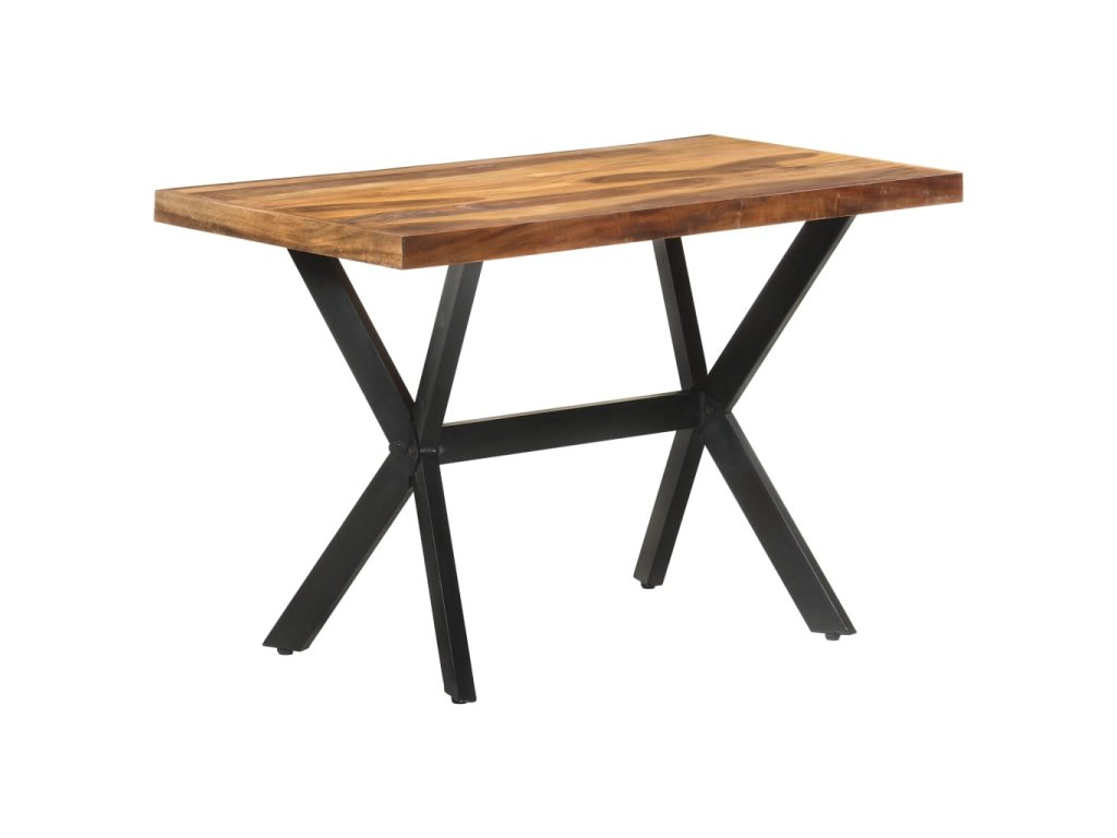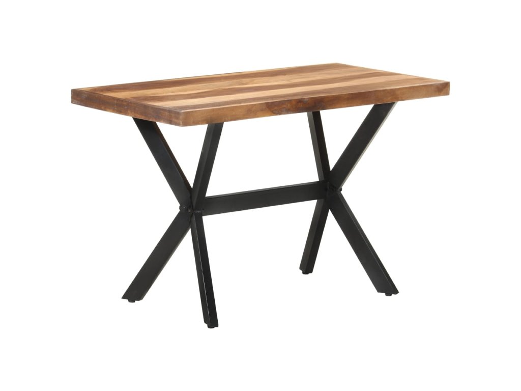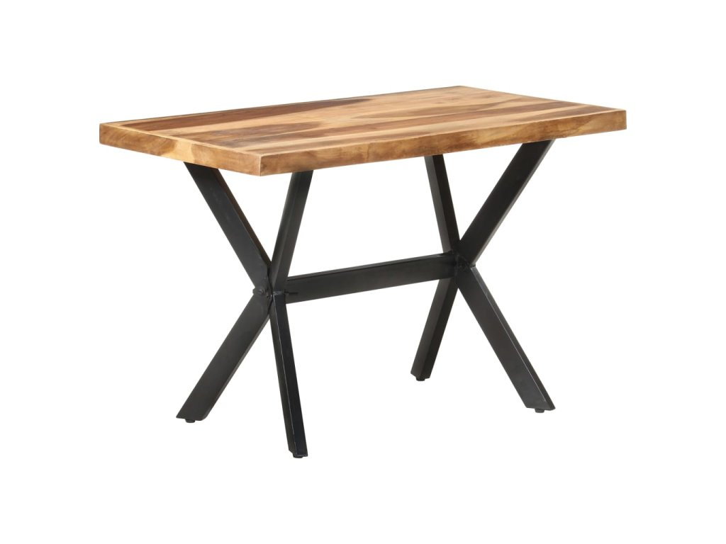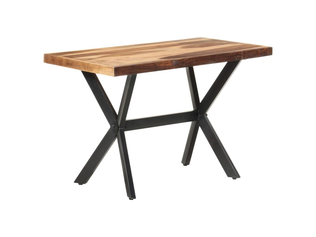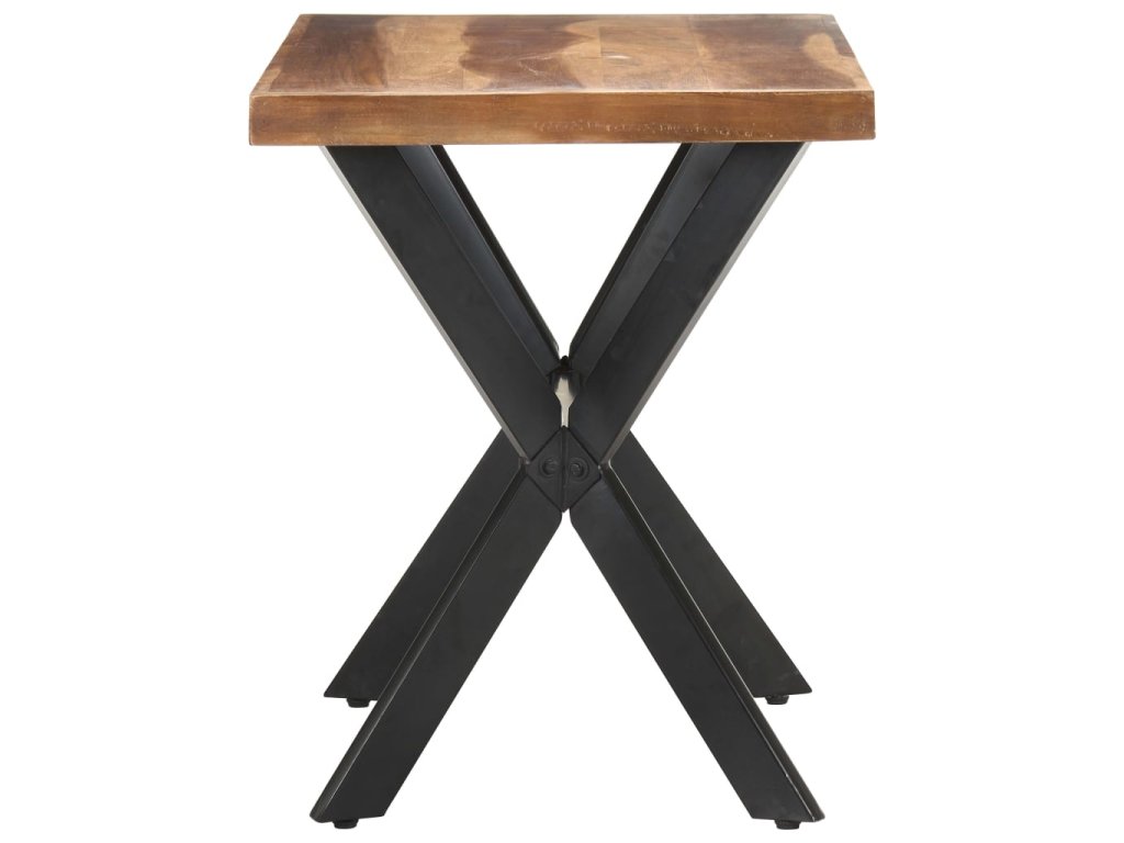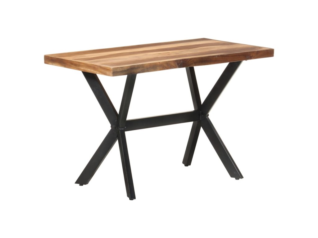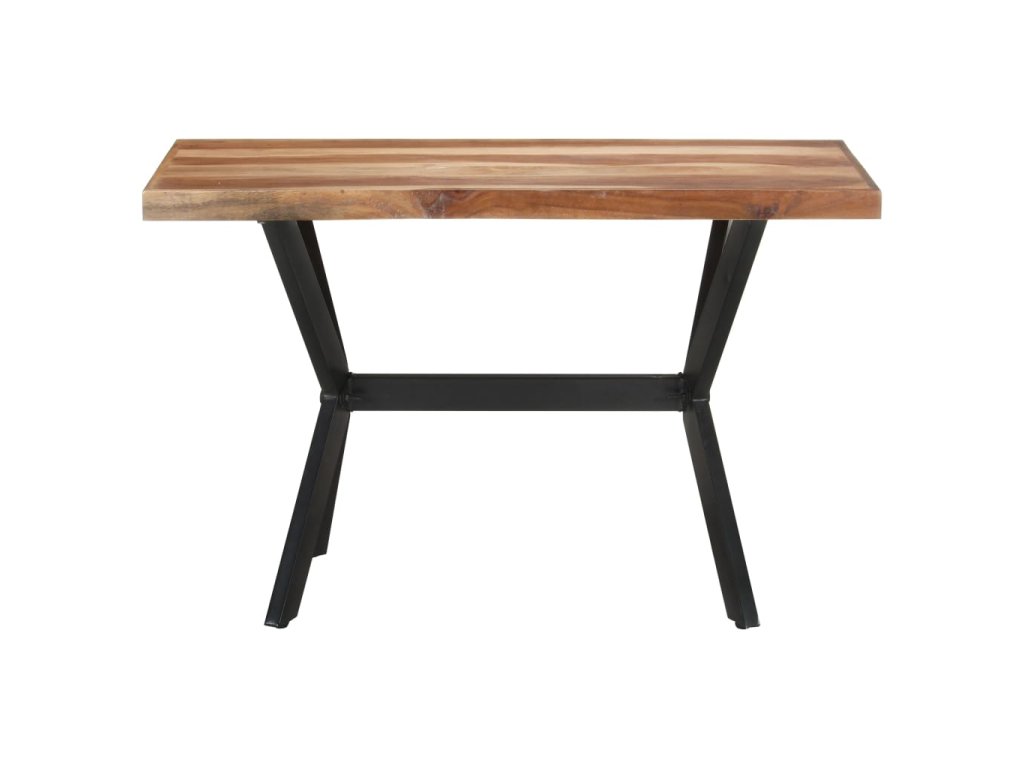 Jedálenský stôl je vyrobený z akáciového a kaučukového masívu s medovým náterom. Stolík je kompletne ručne vyrobený. Každý krok výrobného procesu sa vykonáva s maximálnou starostlivosťou, či už je to leštenie, natieranie alebo lakovanie. Oceľové nohy dotvárajú industriálny vzhľad stolíka a spolu s prekríženým oceľovým rámom vytvárajú pevnú konštrukciu.