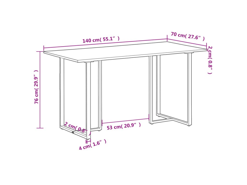 Jedálenský stôl je vyrobený z masívneho mangovníkového dreva. Je to drevo tropického listnatého stromu, ktoré je dostatočne pevné na to, aby unieslo aj značnú hmotnosť, no zároveň odoláva každodennému opotrebovaniu. Vďaka vynikajúcemu remeselnému spracovaniu a krásnej textúre dreva je každý stôl trochu odlišný od ostatných kusov. Nohy z práškovaného železa mu dodávajú stabilitu a pevnosť.