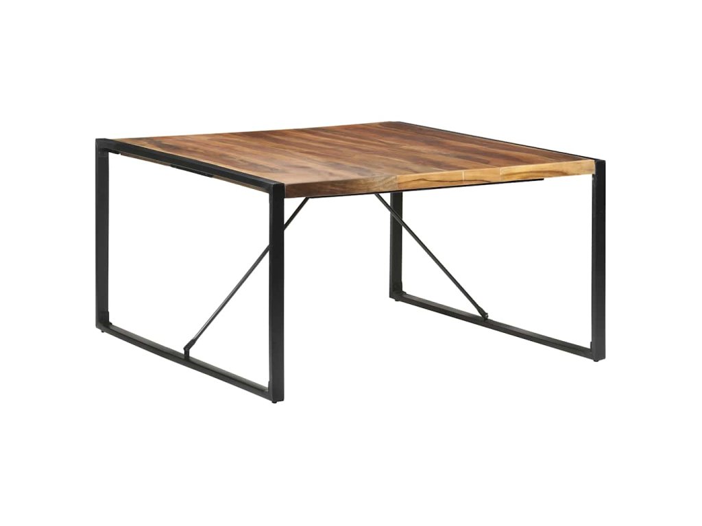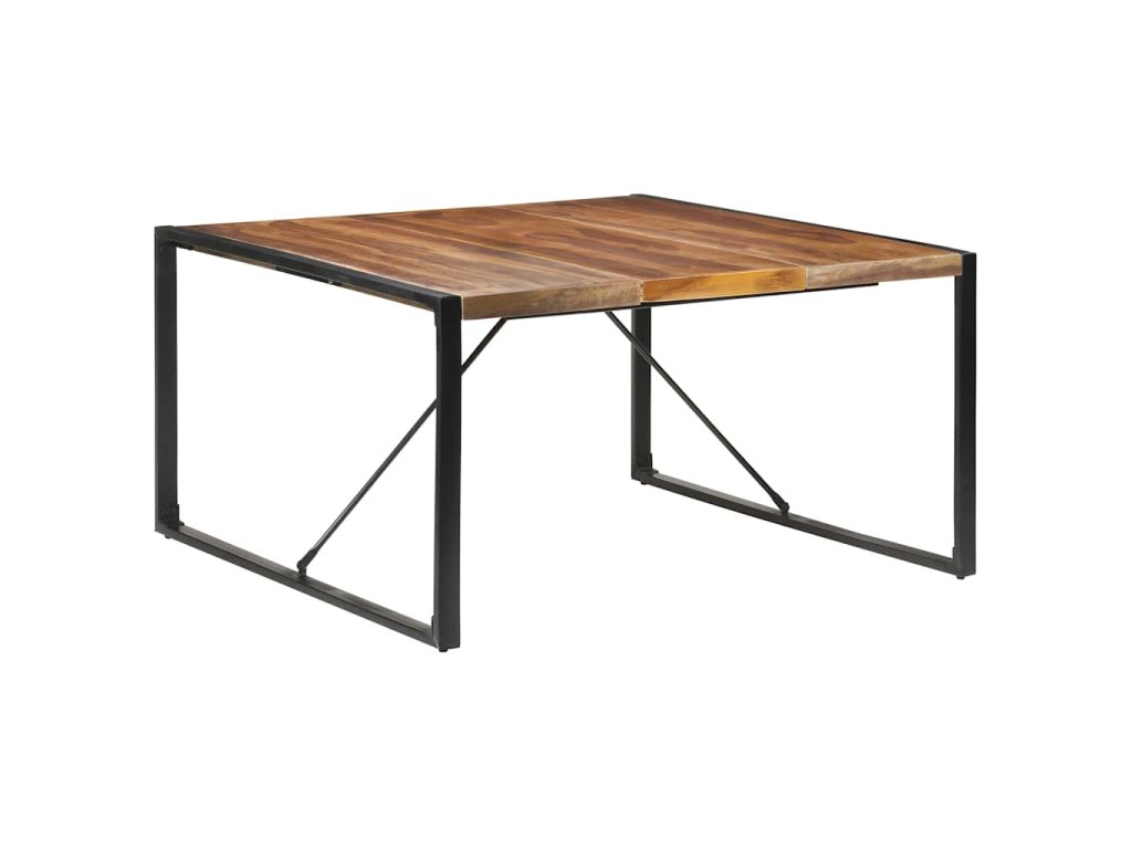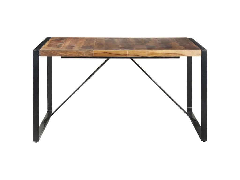 Jedálenský stôl je vyrobený z akáciového a kaučukového masívu, vďaka čomu je stabilný a trvácny. Povrchová úprava mu dodáva prírodnú kresbu a hladkú textúru. Vďaka remeselnému opracovaniu a krásnej textúre dreva je každý kus nábytku jedinečný a trochu odlišný od ostatných. Pevné oceľové nohy s práškovou povrchovou úpravou stolíku dodávajú potrebnú stabilitu.