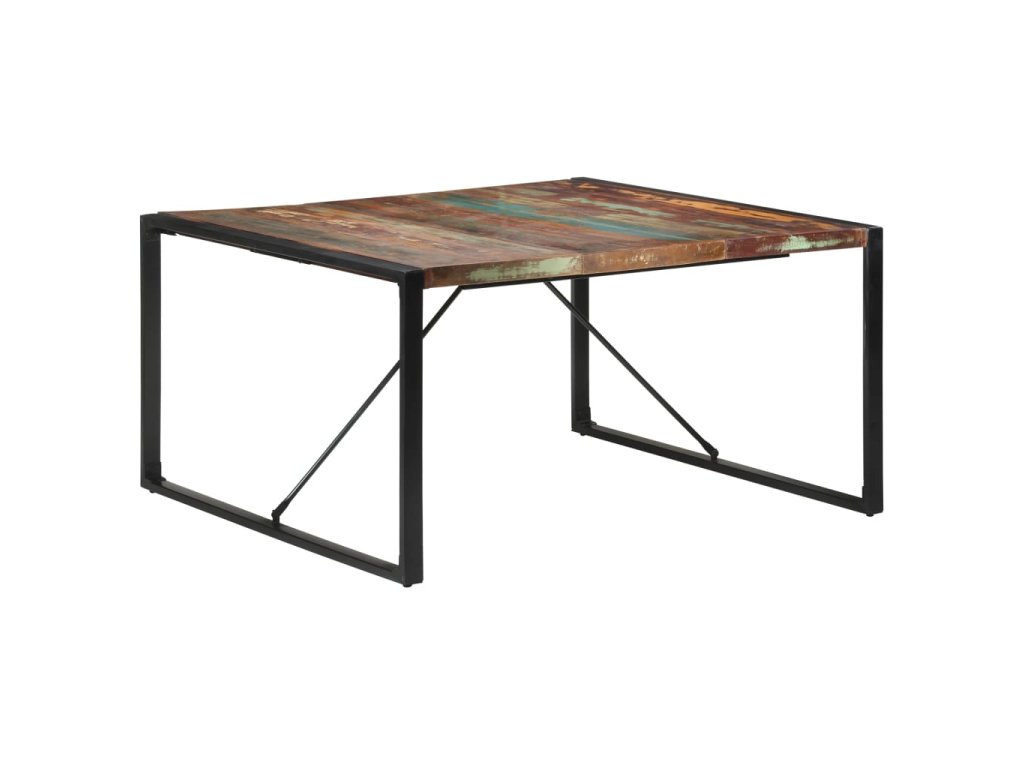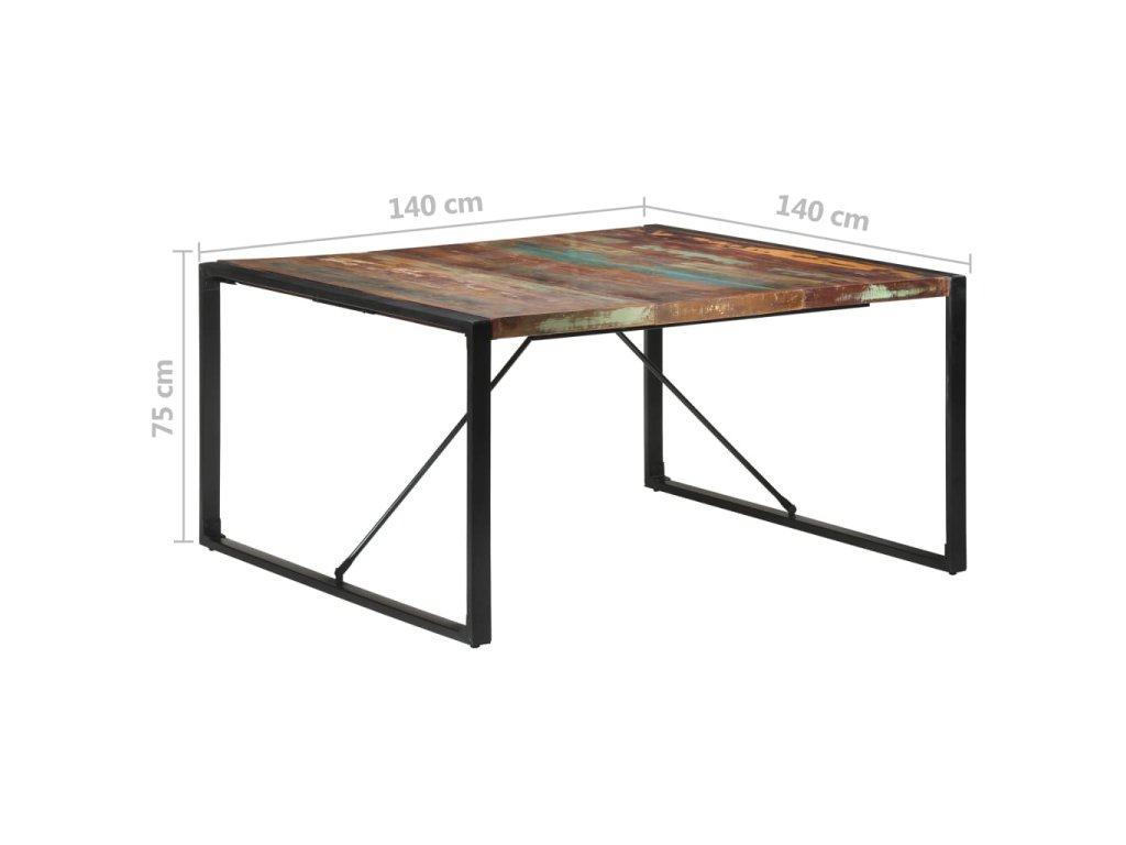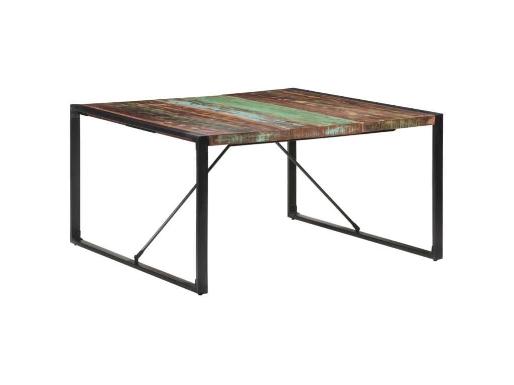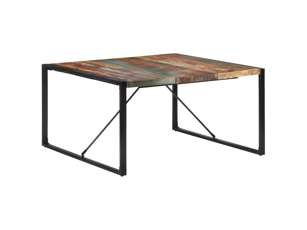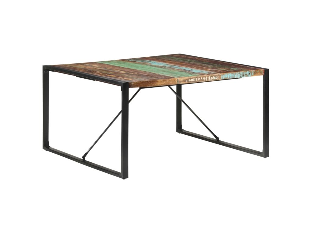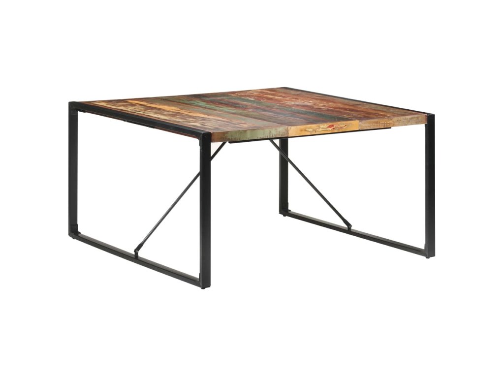 Jedálenský stôl je vyrobený z recyklovaného masívu, ktorý pochádza z trámov, podláh a nosníkov zo starých zbúraných stavieb a pozostáva z rôznych typov dreva, ako napríklad tíkového, tvrdého, tropického či mangového dreva. Recyklované drevo sa preto vyznačuje vlastnosťami týchto typov dreva. Recyklované drevo je staré, zvetrané a usušené, a preto sa nezmršťuje ani neohýba. Pevné oceľové nohy s práškovou povrchovou úpravou stolu dodávajú extra stabilitu.