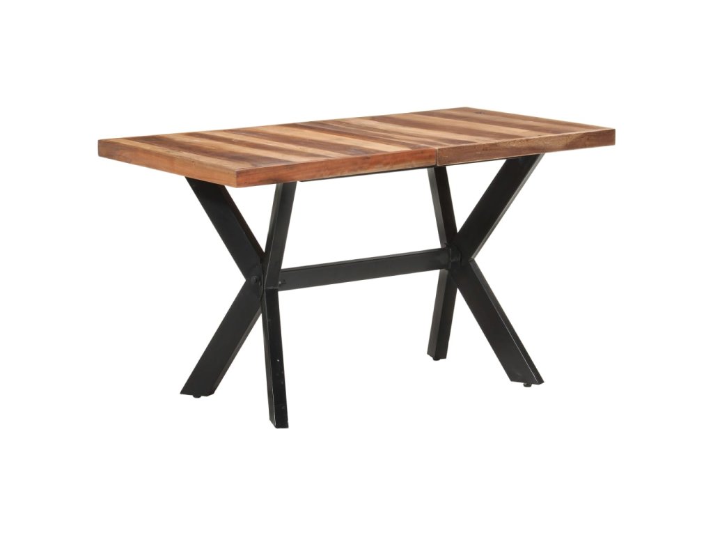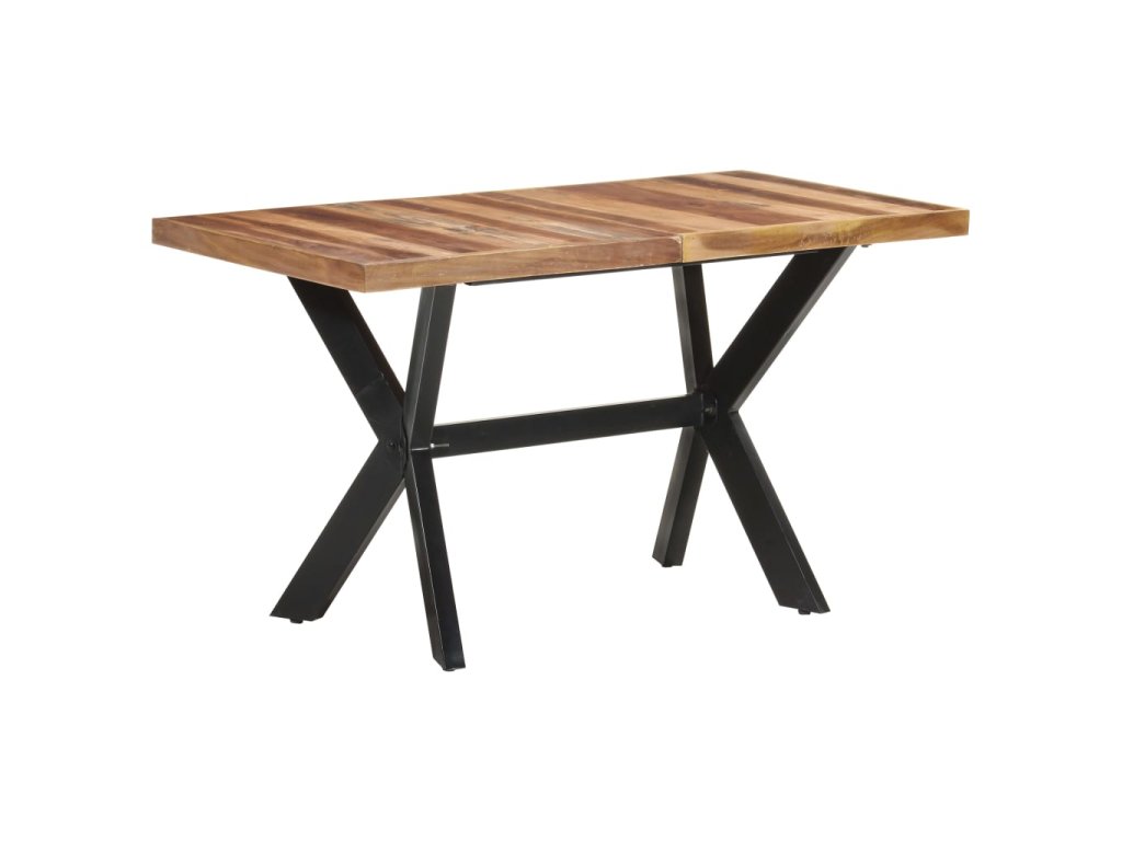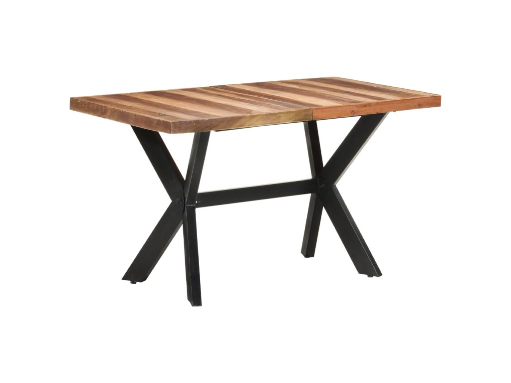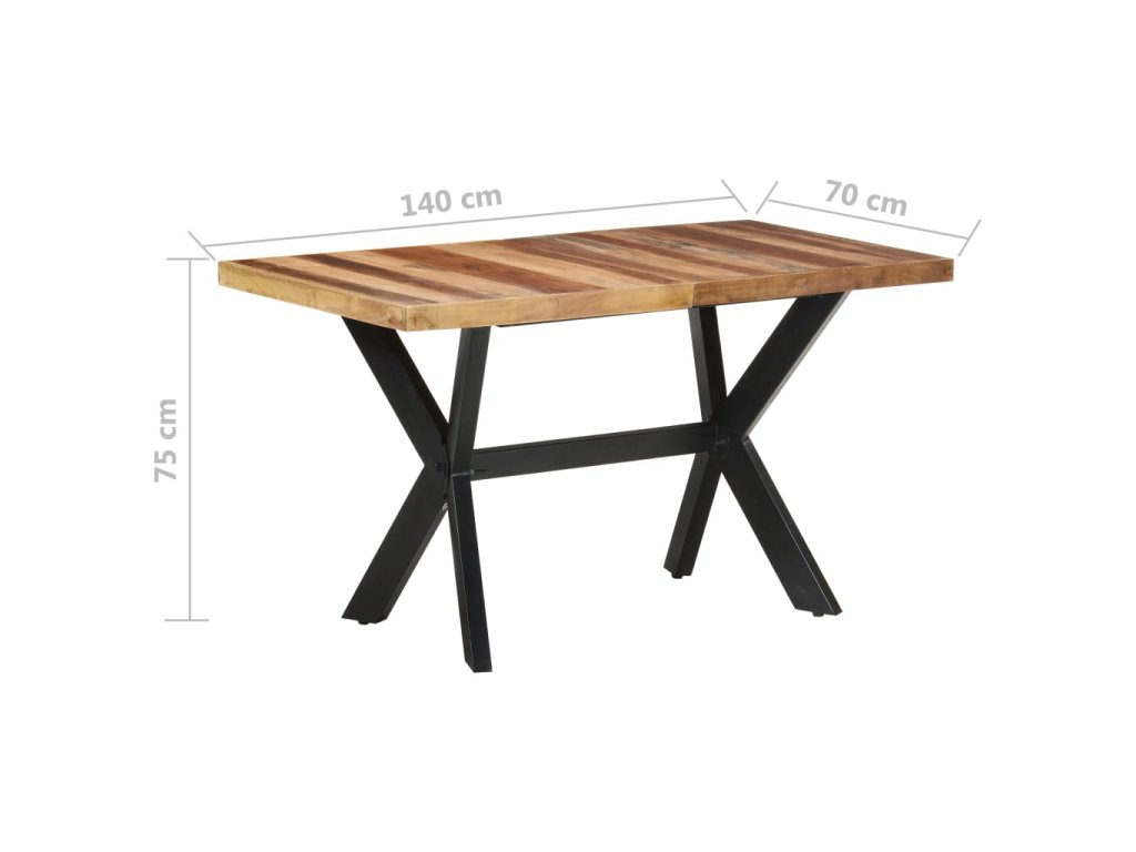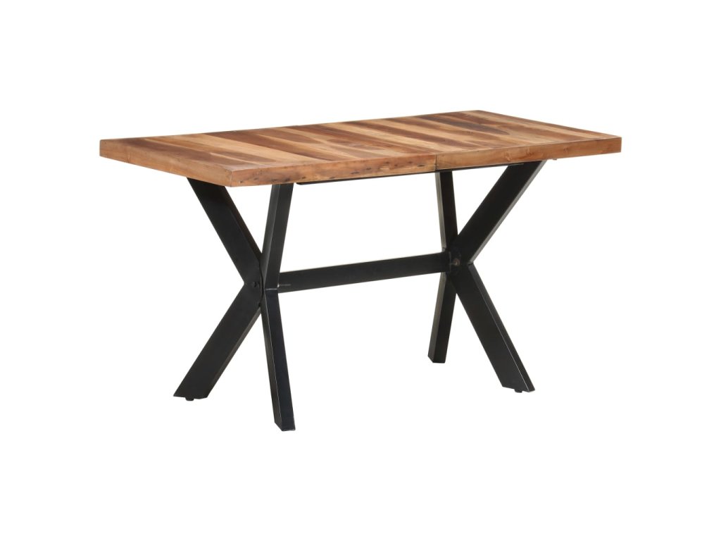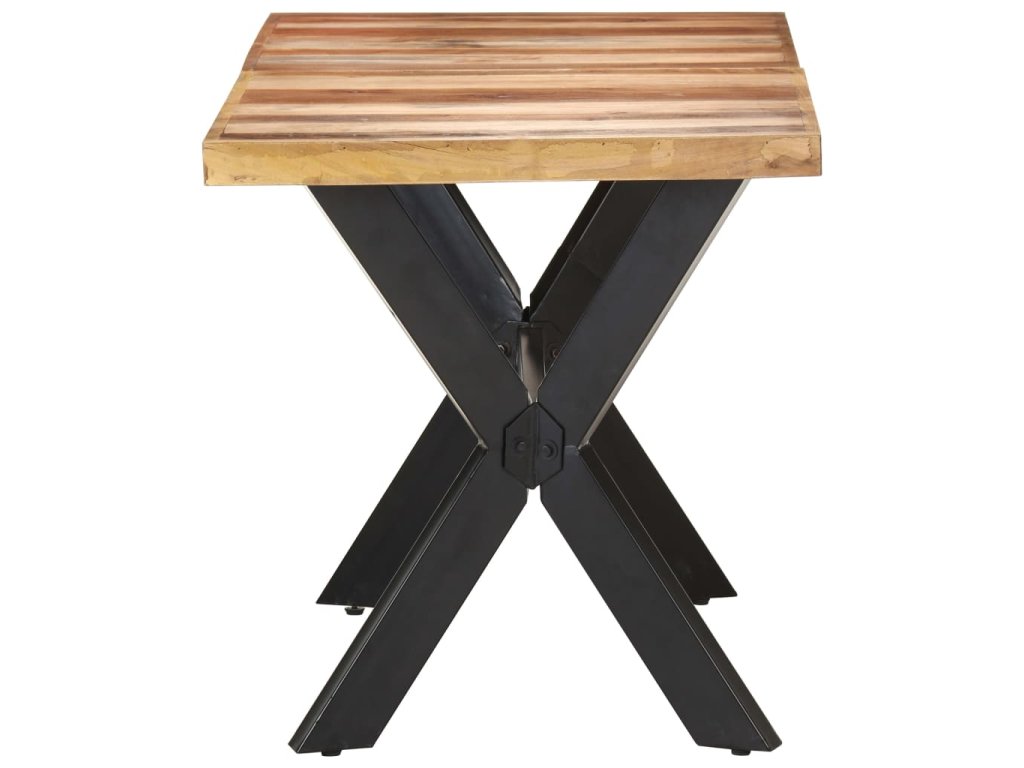 Jedálenský stôl je vyrobený z akáciového a kaučukového masívu s medovým náterom. Stolík je kompletne ručne vyrobený. Každý krok výrobného procesu sa vykonáva s maximálnou starostlivosťou, či už je to leštenie, natieranie alebo lakovanie. Oceľové nohy dotvárajú industriálny vzhľad stolíka a spolu s prekríženým oceľovým rámom vytvárajú pevnú konštrukciu.