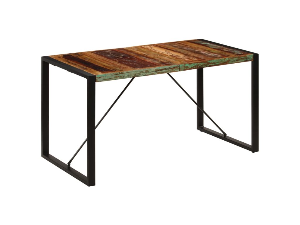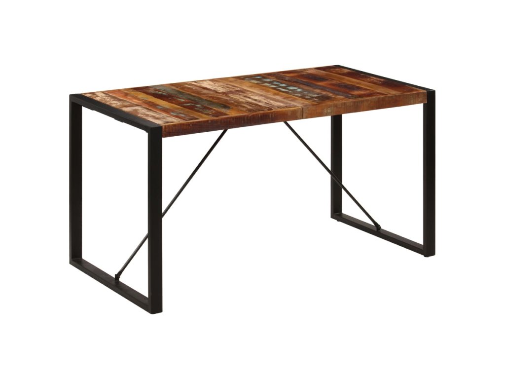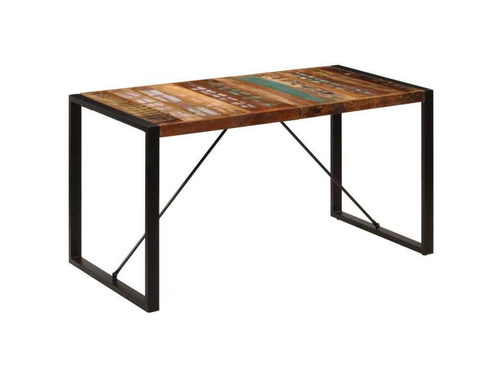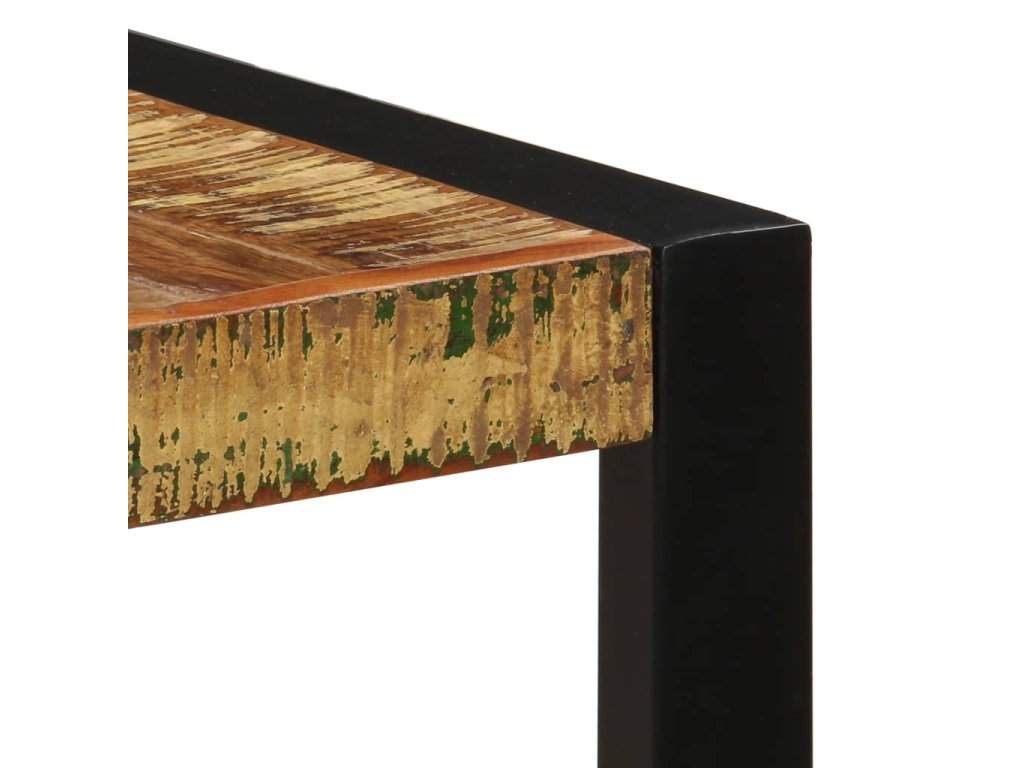 Starožitný jedálenský stôl je vyrobený z recyklovaného masívu, ktorý pochádza z trámov, podláh a nosníkov zo starých zbúraných stavieb a pozostáva z rôznych typov dreva, ako napríklad borovicového, tíkového, bukového, dubového, cédrového, mangového či akáciového dreva. Recyklované drevo sa preto vyznačuje vlastnosťami týchto typov dreva. Recyklované drevo je staré, zvetrané a usušené, a preto sa nezmršťuje ani neohýba. Stôl je kompletne ručne vyrobený a vďaka elegantnej textúre dreva je každý kus nábytku výnimočný a trochu odlišný od ostatných. Pevné oceľové nohy s práškovou povrchovou úpravou stolu dodávajú potrebnú stabilitu. Jedálenský stôl sa jednoducho montuje.