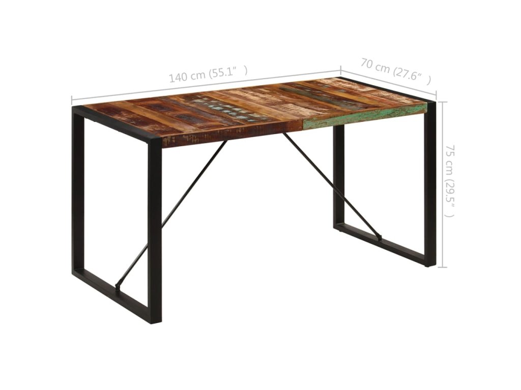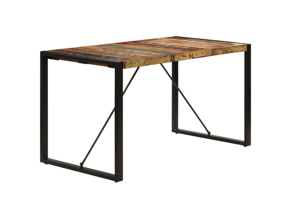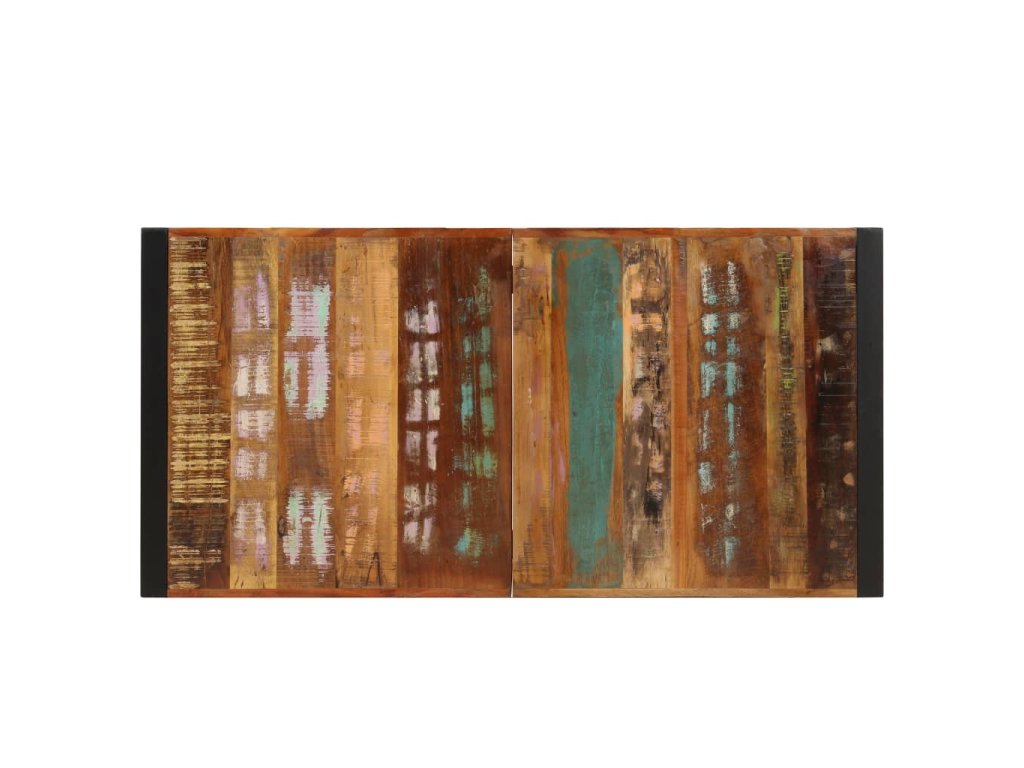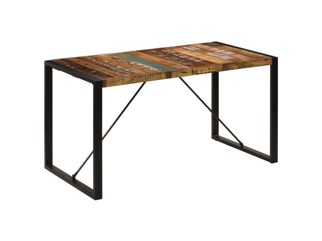 Starožitný jedálenský stôl je vyrobený z recyklovaného masívu, ktorý pochádza z trámov, podláh a nosníkov zo starých zbúraných stavieb a pozostáva z rôznych typov dreva, ako napríklad borovicového, tíkového, bukového, dubového, cédrového, mangového či akáciového dreva. Recyklované drevo sa preto vyznačuje vlastnosťami týchto typov dreva. Recyklované drevo je staré, zvetrané a usušené, a preto sa nezmršťuje ani neohýba. Stôl je kompletne ručne vyrobený a vďaka elegantnej textúre dreva je každý kus nábytku výnimočný a trochu odlišný od ostatných. Pevné oceľové nohy s práškovou povrchovou úpravou stolu dodávajú potrebnú stabilitu. Jedálenský stôl sa jednoducho montuje.