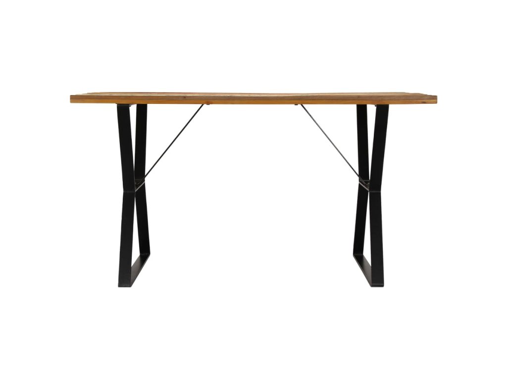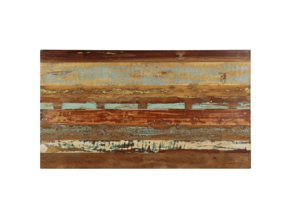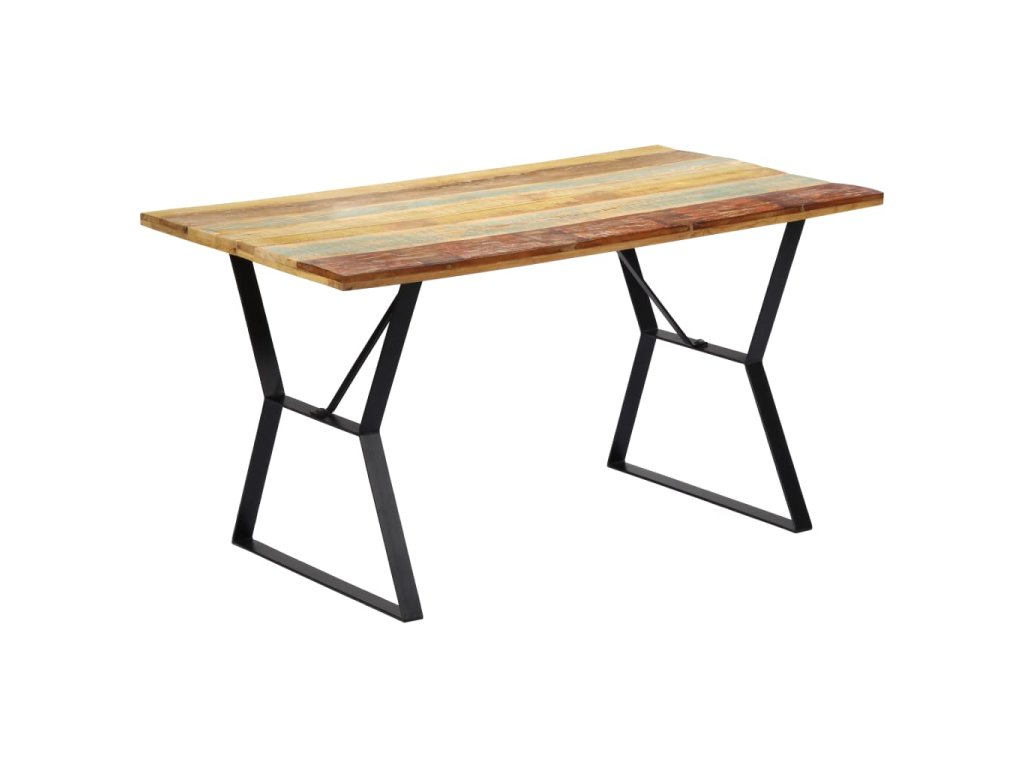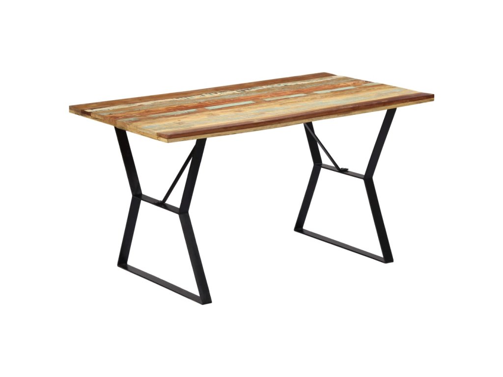 Jedálenský stôl v starožitnom štýle je vyrobený z recyklovaného masívu, ktorý pochádza z trámov, podláh a nosníkov zo starých zbúraných stavieb a pozostáva z rôznych typov dreva, ako napríklad borovicového, tíkového, bukového, dubového, cédrového, mangového či akáciového dreva. Recyklované drevo sa preto vyznačuje vlastnosťami týchto typov dreva. Recyklované drevo je staré, zvetrané a usušené, a preto sa nezmršťuje ani neohýba. Stôl je kompletne ručne vyrobený a vďaka zaujímavej textúre dreva je každý kus nábytku výnimočný a trochu odlišný od ostatných. Pevné železné nohy s práškovou povrchovou úpravou stolu dodávajú potrebnú stabilitu. Jedálenský stôl sa jednoducho montuje.