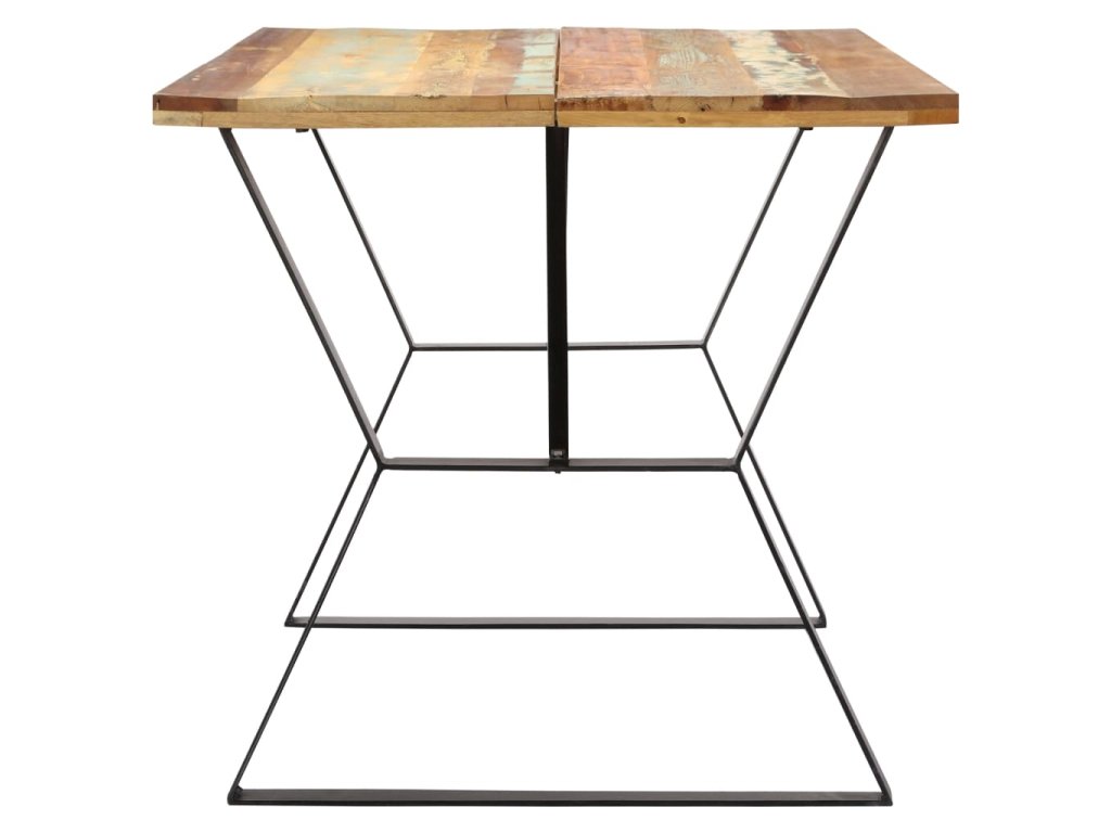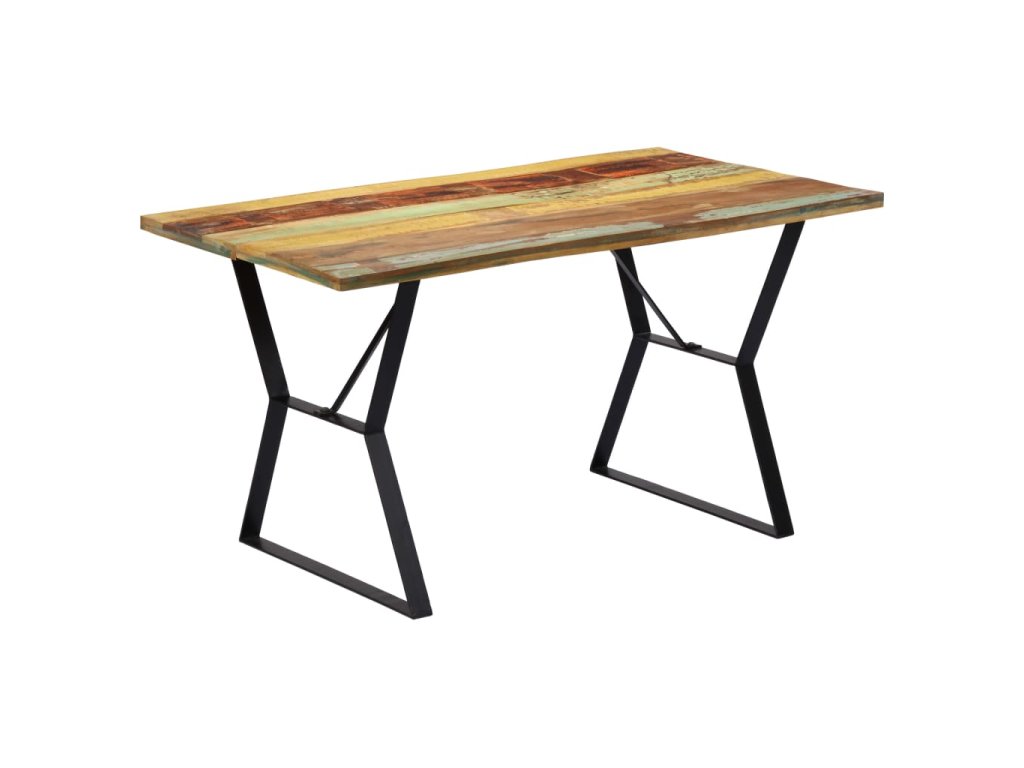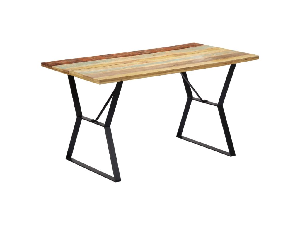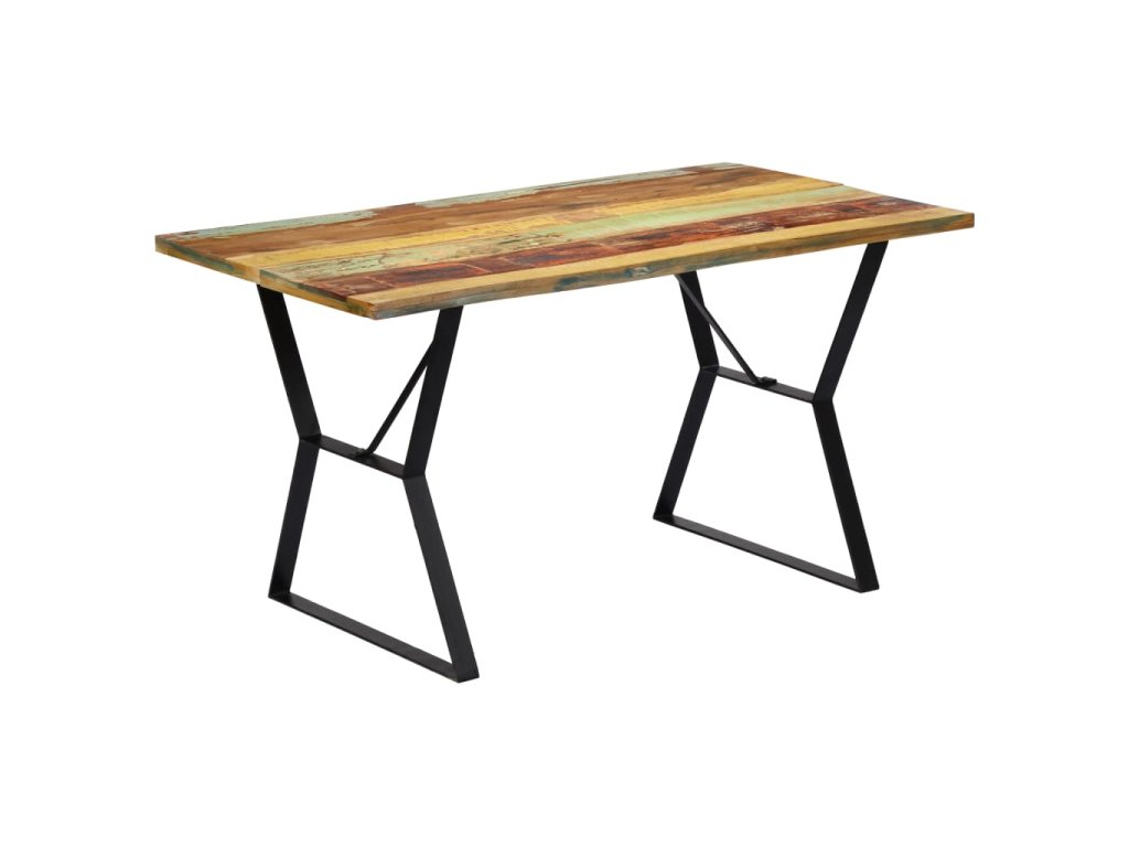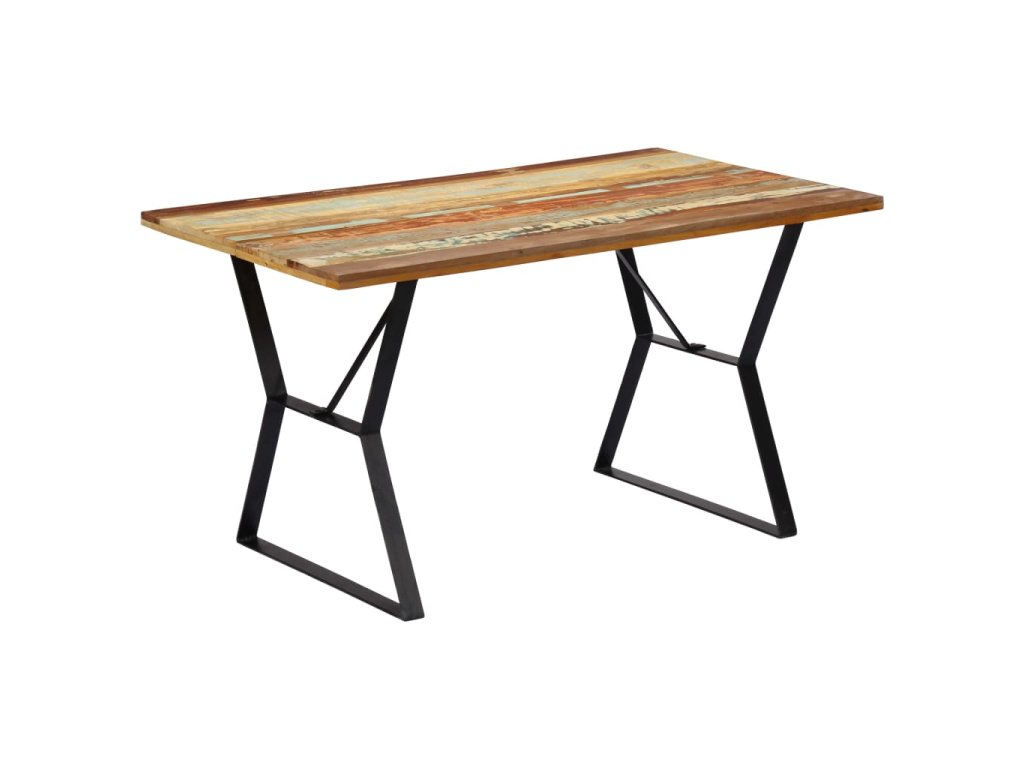 Jedálenský stôl v starožitnom štýle je vyrobený z recyklovaného masívu, ktorý pochádza z trámov, podláh a nosníkov zo starých zbúraných stavieb a pozostáva z rôznych typov dreva, ako napríklad borovicového, tíkového, bukového, dubového, cédrového, mangového či akáciového dreva. Recyklované drevo sa preto vyznačuje vlastnosťami týchto typov dreva. Recyklované drevo je staré, zvetrané a usušené, a preto sa nezmršťuje ani neohýba. Stôl je kompletne ručne vyrobený a vďaka zaujímavej textúre dreva je každý kus nábytku výnimočný a trochu odlišný od ostatných. Pevné železné nohy s práškovou povrchovou úpravou stolu dodávajú potrebnú stabilitu. Jedálenský stôl sa jednoducho montuje.