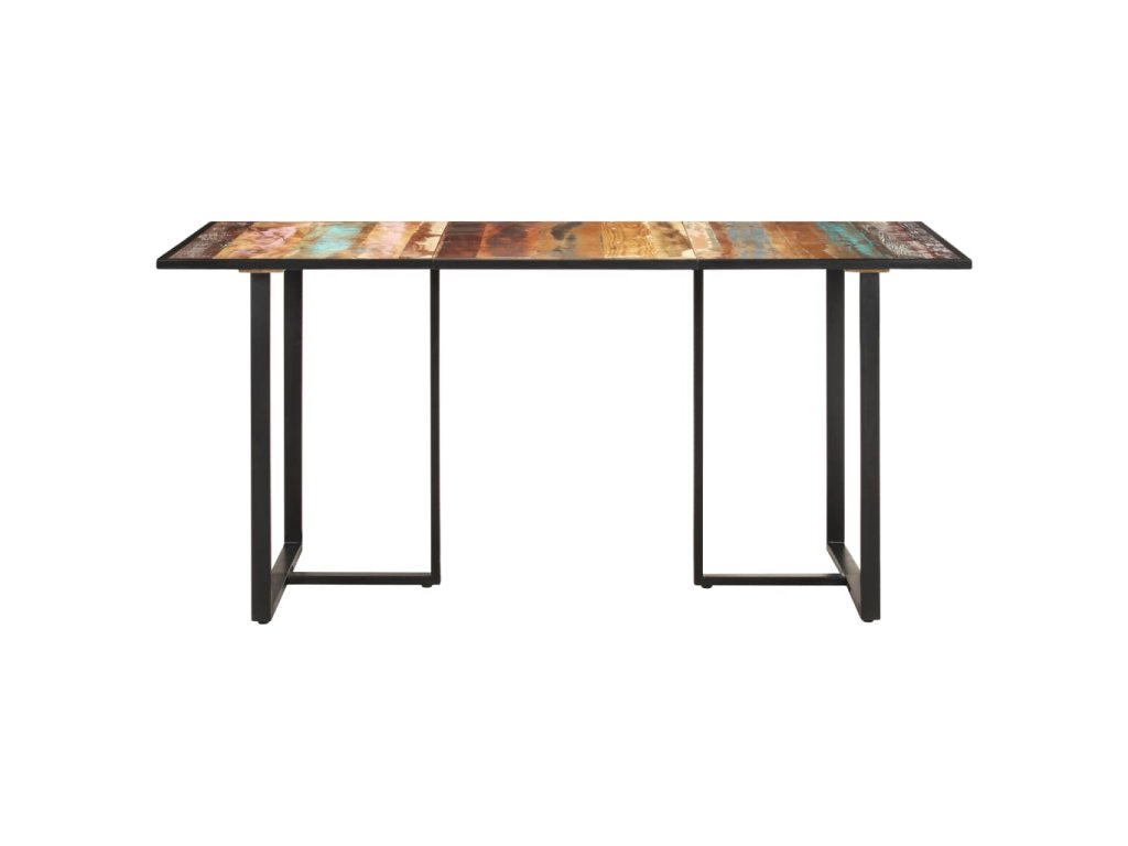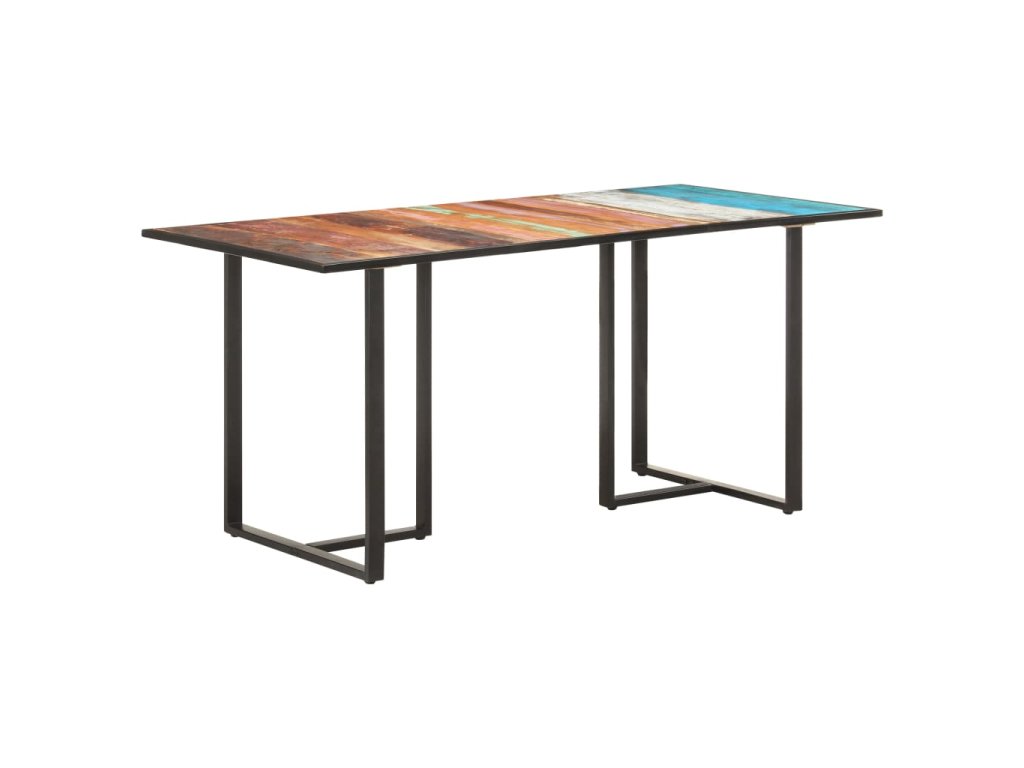 Jedálenský stolík je vyrobený z recyklovaného masívu, ktorý pochádza z trámov, podláh a nosníkov zo starých zbúraných stavieb a pozostáva z rôznych typov dreva, ako napríklad borovicového, tíkového, dubového, mangového či akáciového dreva. Recyklované drevo sa preto vyznačuje vlastnosťami týchto typov dreva. Recyklované drevo je staré, zvetrané a usušené, a preto sa nezmršťuje ani neohýba. Železné nohy s práškovou povrchovou úpravou stolíku dodávajú potrebnú pevnosť a stabilitu.