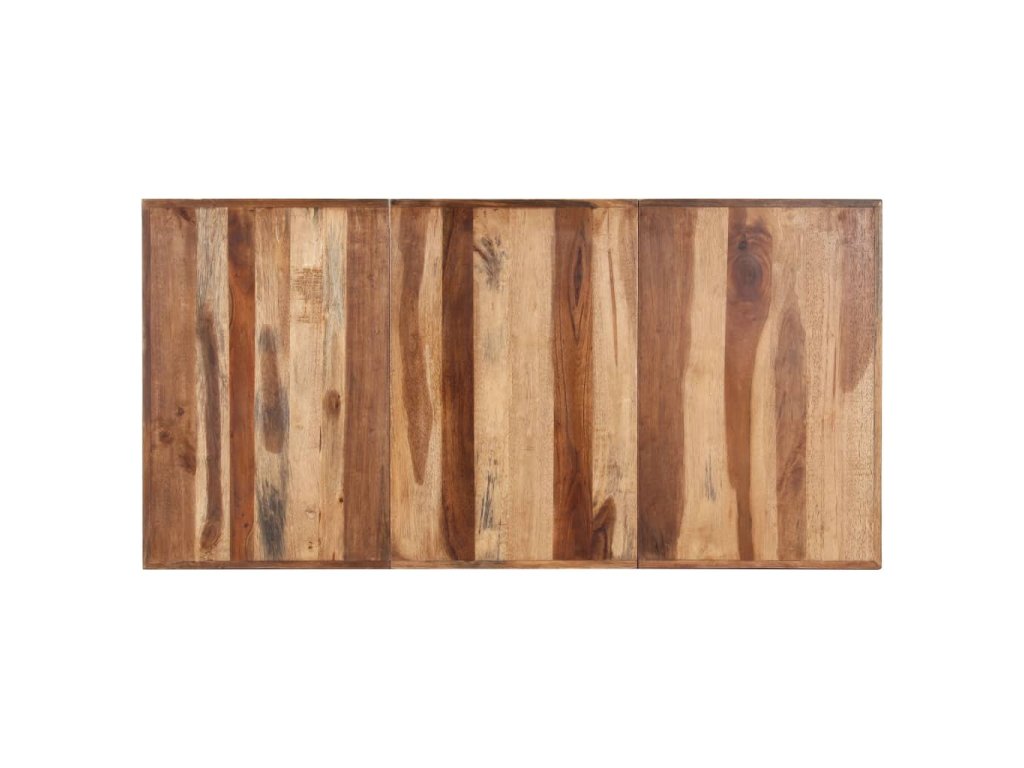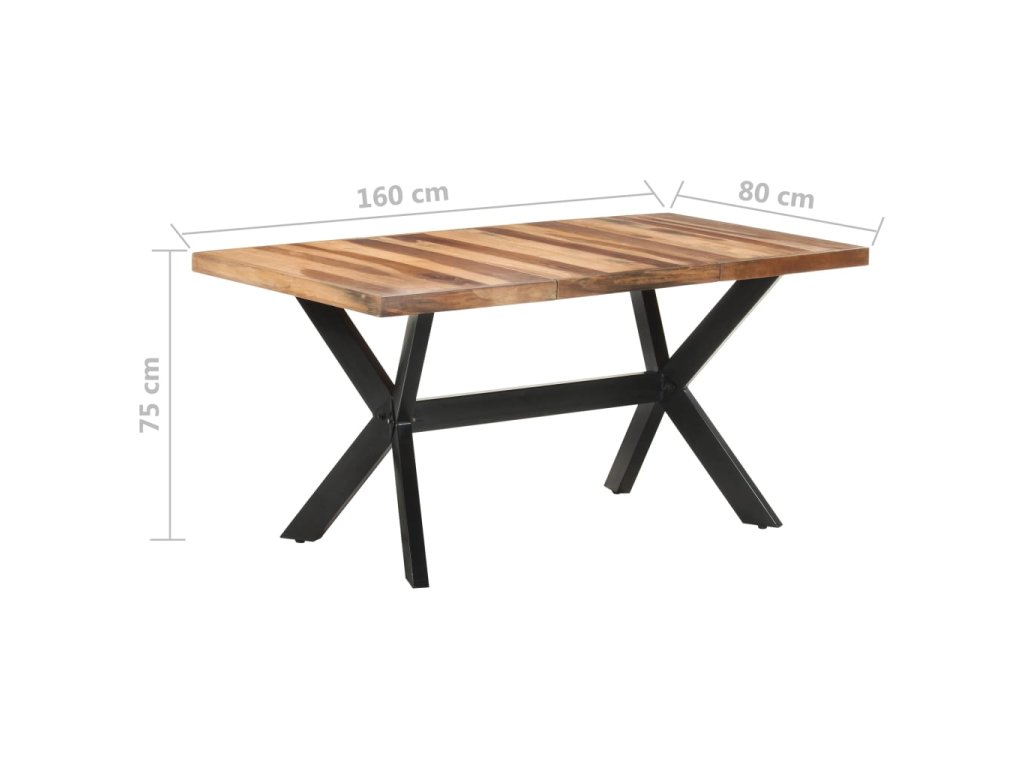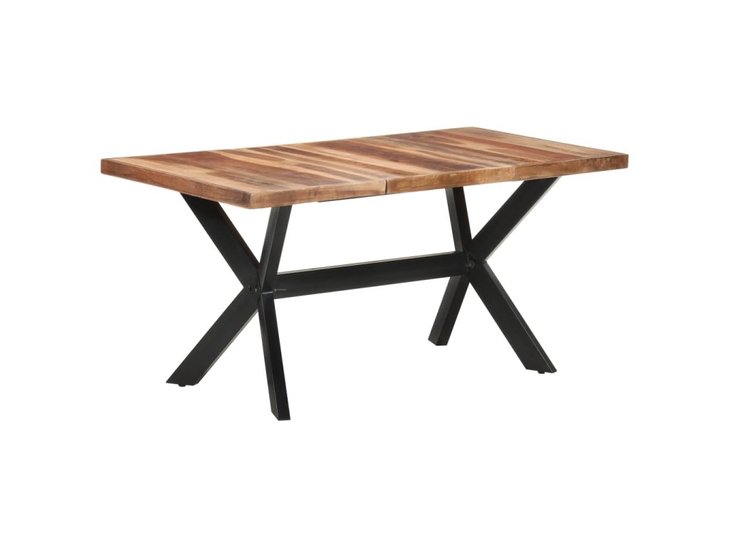 Jedálenský stôl je vyrobený z akáciového a kaučukového masívu s medovým náterom. Stolík je kompletne ručne vyrobený. Každý krok výrobného procesu sa vykonáva s maximálnou starostlivosťou, či už je to leštenie, natieranie alebo lakovanie. Oceľové nohy dotvárajú industriálny vzhľad stolíka a spolu s prekríženým oceľovým rámom vytvárajú pevnú konštrukciu.