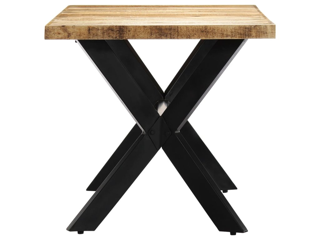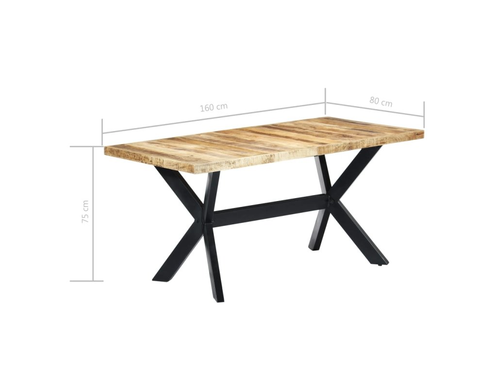 Jedálenský stôl je vyrobený z masívneho surového mangovníkového dreva, ktoré je stabilné a trvácne. Remeselné spracovanie dodáva tomuto stolu veľkolepý retro vzhľad. Jedálenský stôl je ručne vyrobený a každý krok procesu výroby sa vykonáva s maximálnou starostlivosťou, či už ide o leštenie alebo lakovanie. Oceľové nohy dopĺňajú priemyselný vzhľad a oceľový krížový rám prispieva k jeho robustnej konštrukcii.
