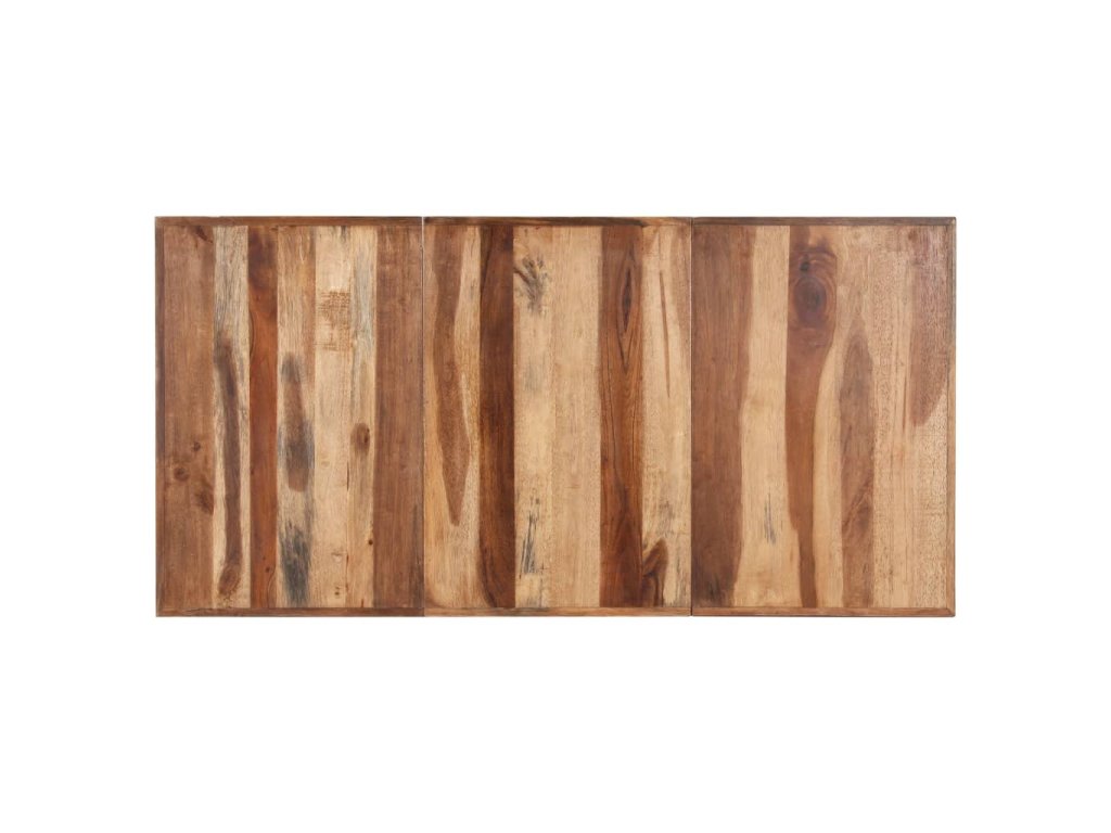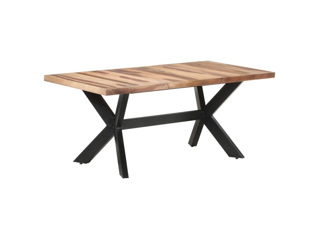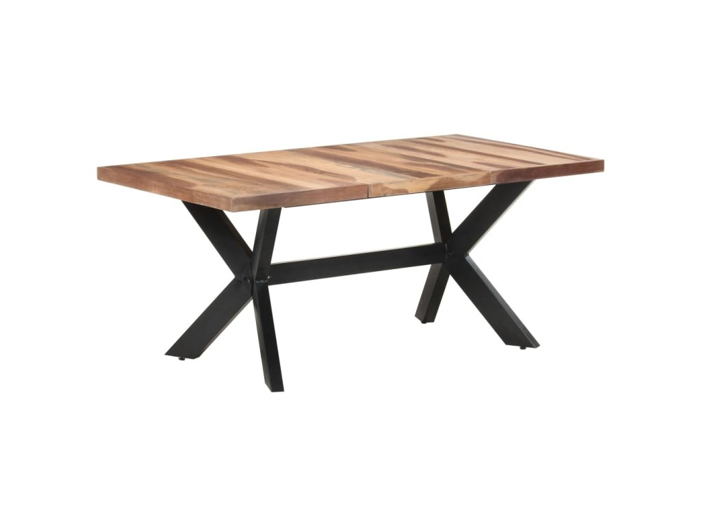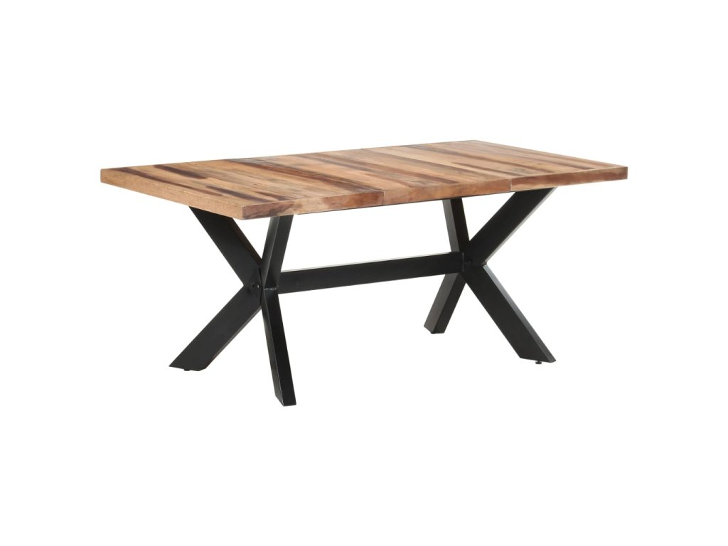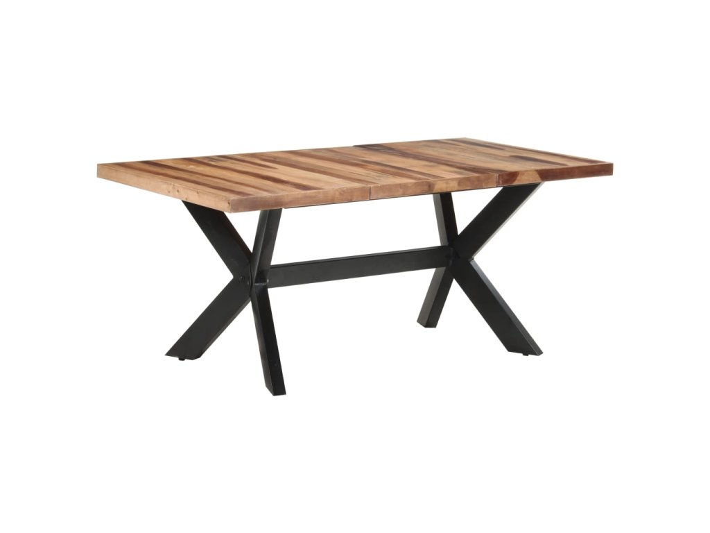 Jedálenský stôl je vyrobený z akáciového a kaučukového masívu s medovým náterom. Stolík je kompletne ručne vyrobený. Každý krok výrobného procesu sa vykonáva s maximálnou starostlivosťou, či už je to leštenie, natieranie alebo lakovanie. Oceľové nohy dotvárajú industriálny vzhľad stolíka a spolu s prekríženým oceľovým rámom vytvárajú pevnú konštrukciu.