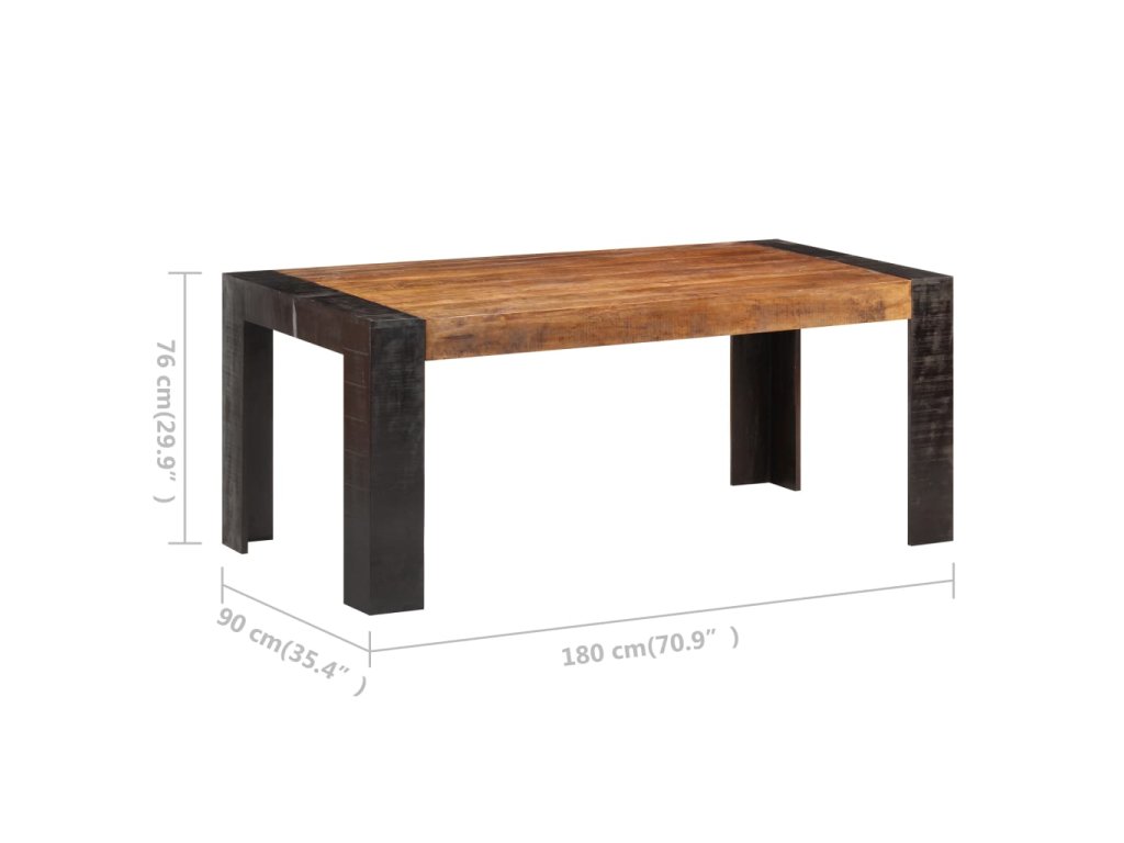 Jedálenský stôl je vyrobený zo surového mangového masívu, vďaka čomu je skutočne stabilný a trvácny. Mangový masív je drevo tropického listnatého stromu, ktoré je dostatočne pevné na to, aby unieslo aj značnú váhu, no zároveň odoláva každodennému opotrebovaniu. Vďaka remeselnému opracovaniu a krásnej textúre dreva je každý kus nábytku jedinečný a trochu odlišný od ostatných.