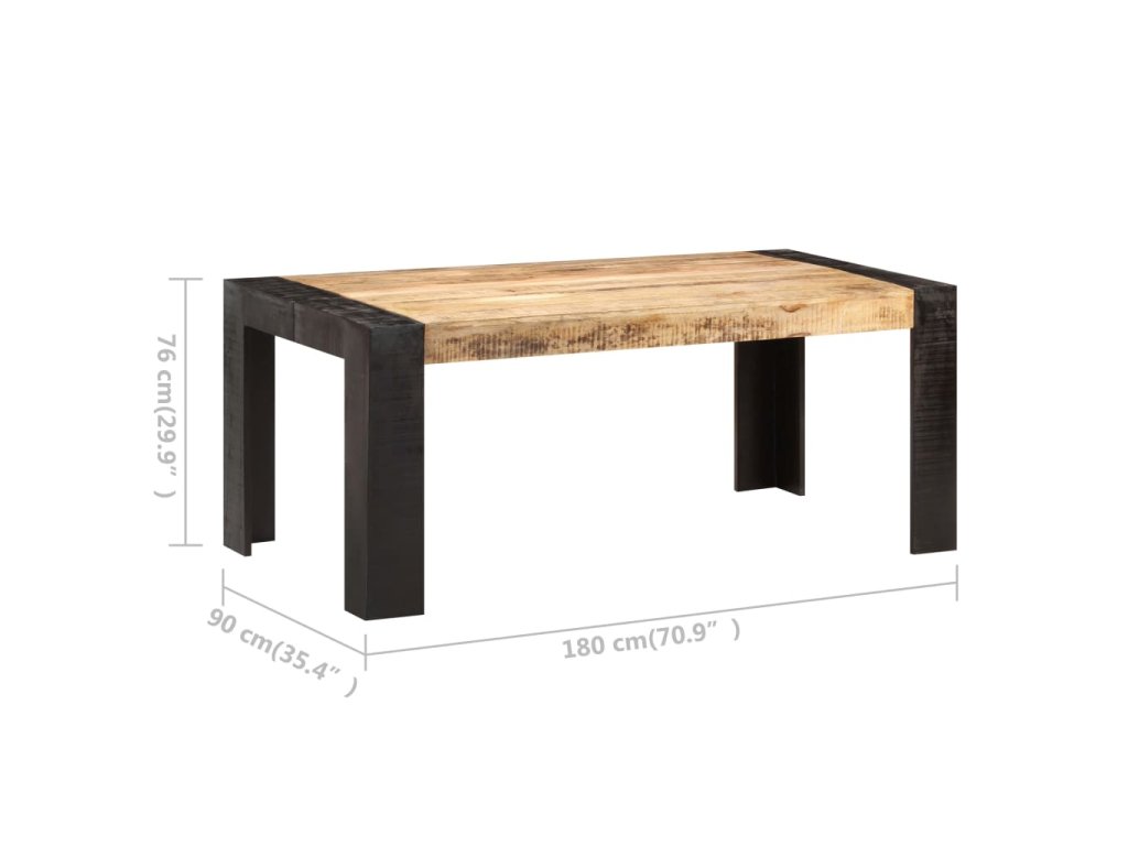 Jedálenský stôl je vyrobený zo surového mangového masívu, vďaka čomu je skutočne stabilný a trvácny. Mangový masív je drevo tropického listnatého stromu, ktoré je dostatočne pevné na to, aby unieslo aj značnú váhu, no zároveň odoláva každodennému opotrebovaniu. Vďaka remeselnému opracovaniu a krásnej textúre dreva je každý kus nábytku jedinečný a trochu odlišný od ostatných.