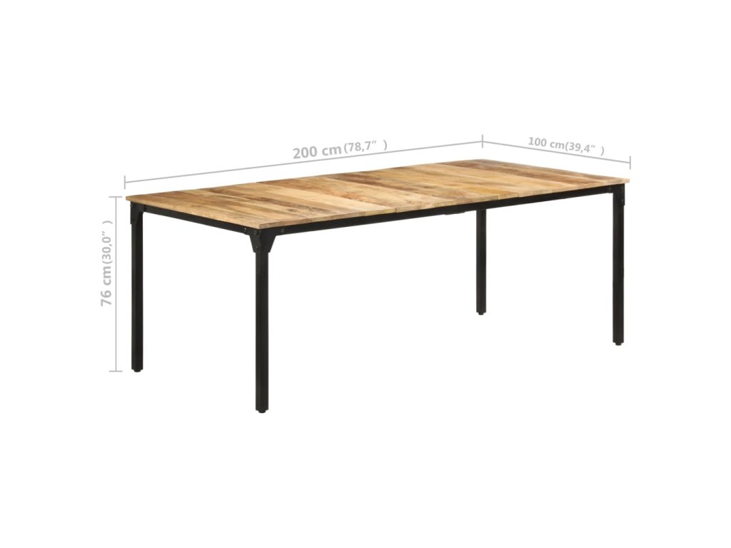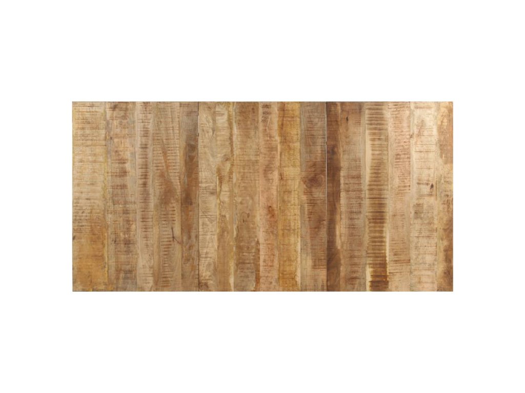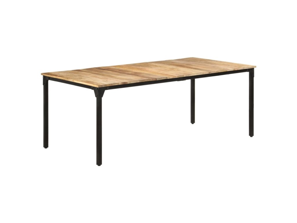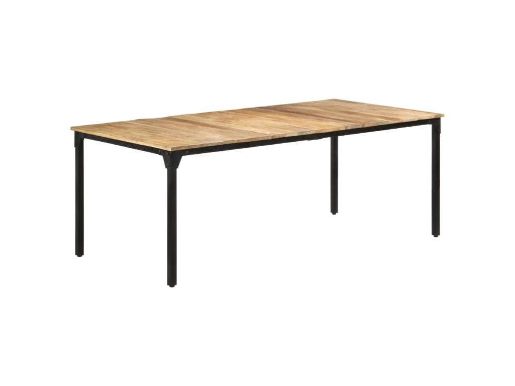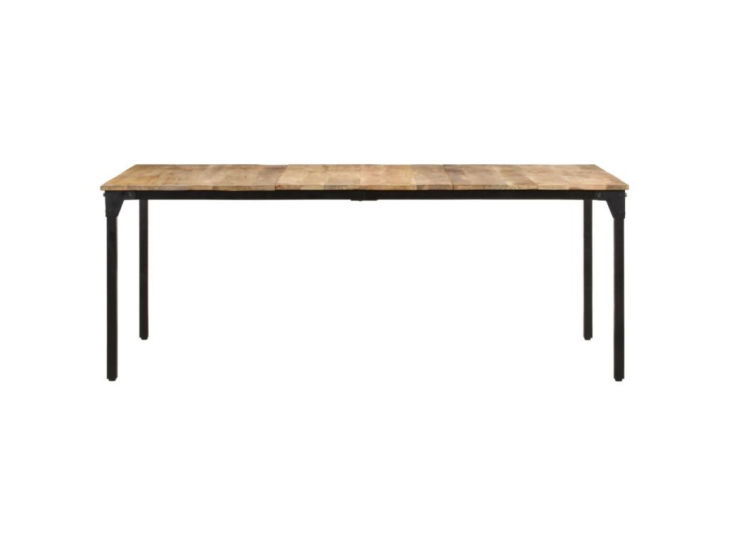 Tento kuchynský stôl je vyrobený zo surového mangovníkového dreva, tropického tvrdého dreva, ktoré znesie aj vysoké zaťaženie. Vydrží tiež opotrebovanie vplyvom času, vďaka čomu je stabilný a odolný. Oceľové nohy s práškovým nástrekom zvyšujú jeho stabilitu a trvácnosť. Drevená stolová doska môže byť použitá na umiestnenie jedál, nápojov alebo iných dekoratívnych predmetov.