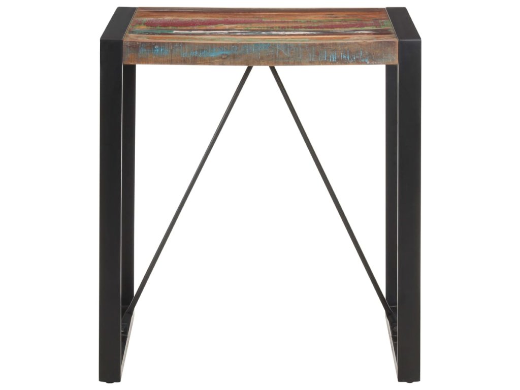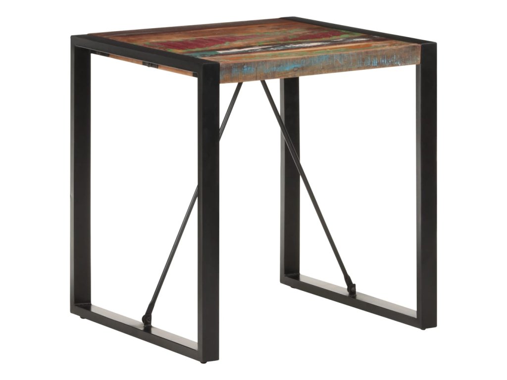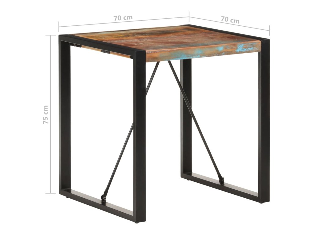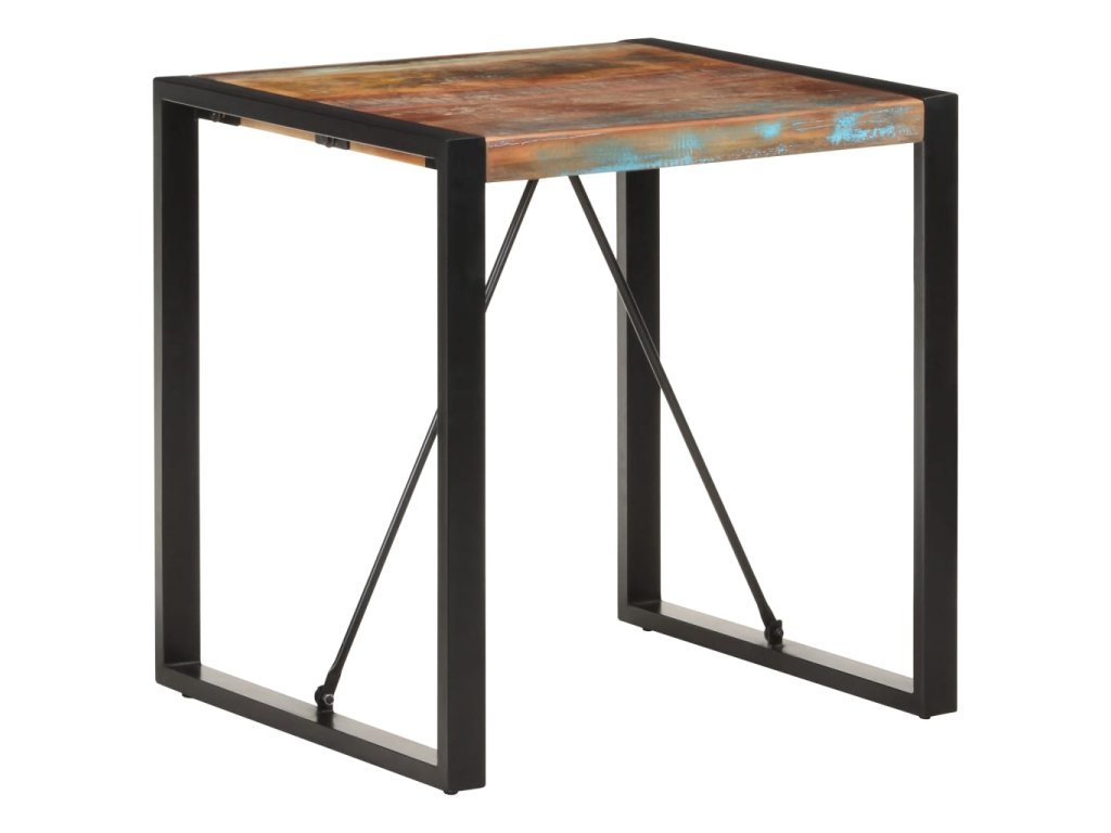 Starožitný bistro stolík je vyrobený z recyklovaného masívu, ktorý pochádza z trámov, podláh a nosníkov zo starých zbúraných stavieb a pozostáva z rôznych typov dreva, ako napríklad borovicového, tíkového či bukového dreva. Recyklované drevo sa preto vyznačuje vlastnosťami týchto typov dreva. Recyklované drevo je staré, zvetrané a usušené, a preto sa nezmršťuje ani neohýba. Stôl má elegantnú textúru dreva, vďaka ktorej je každý kus nábytku výnimočný a trochu odlišný od ostatných. Pevné oceľové nohy s práškovou povrchovou úpravou stolu dodávajú potrebnú stabilitu.