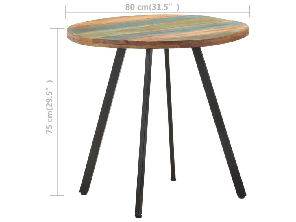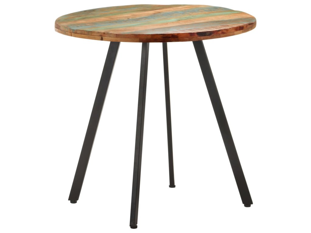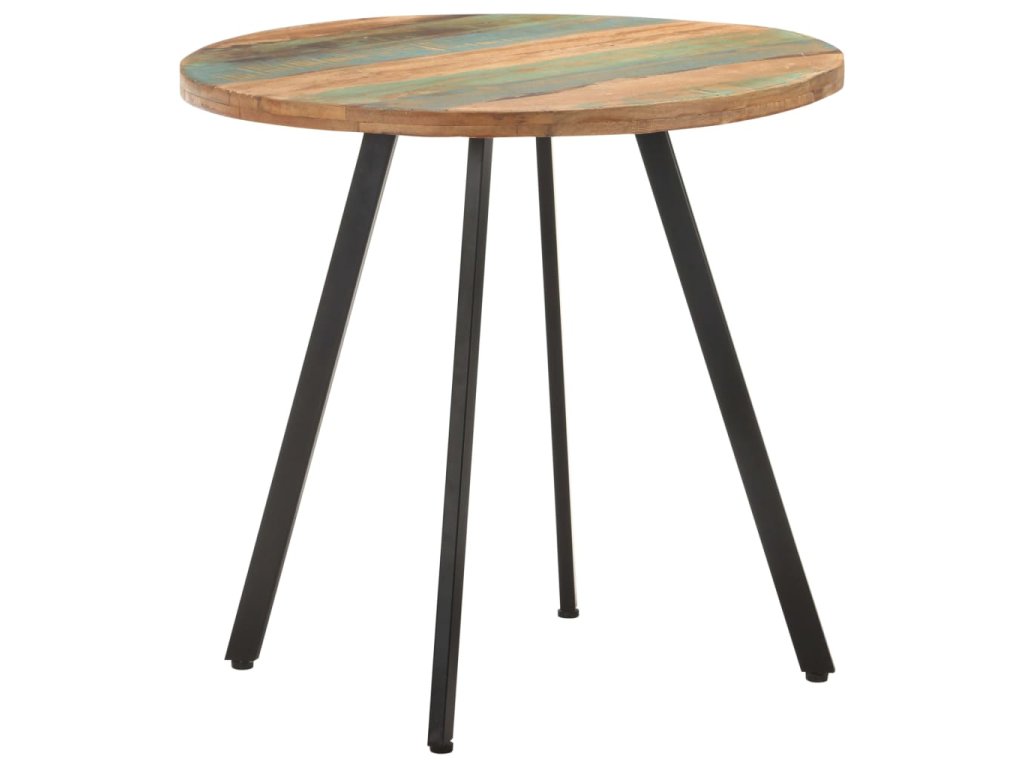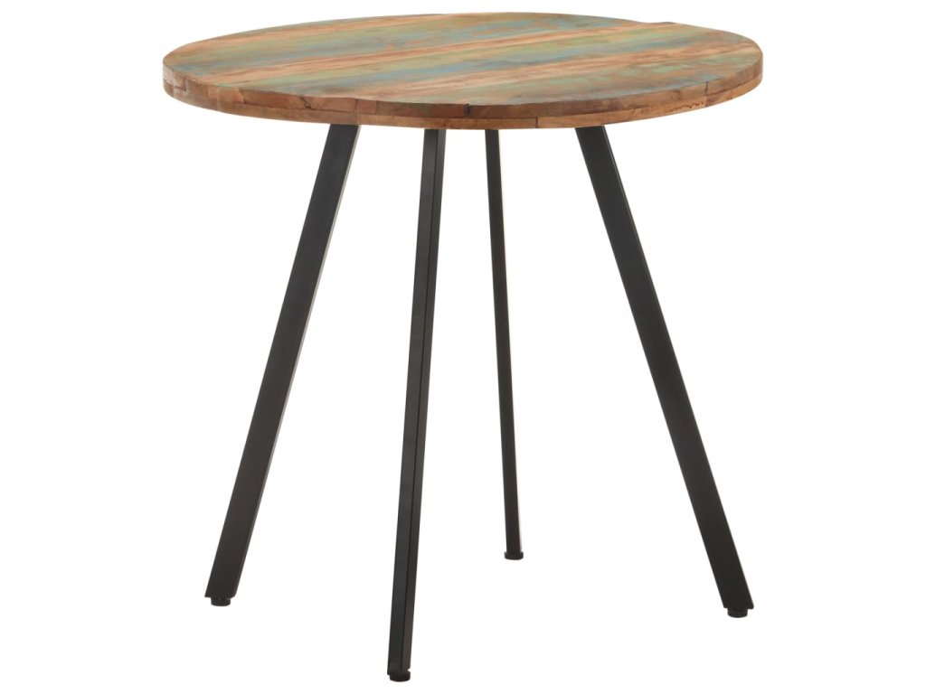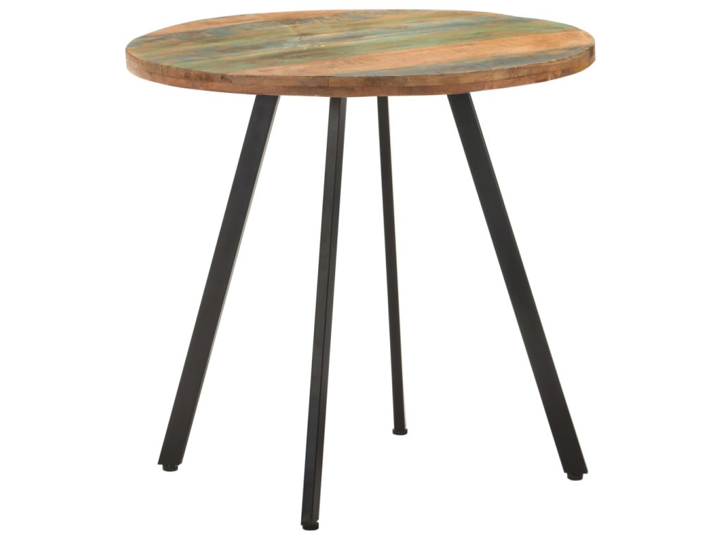 Jedálenský stôl je ručne vyrobený z masívneho recyklovaného dreva v rôznofarebnom prevedení, ktoré pochádza z trámov, podláh a nosníkov starých zbúraných stavieb. Okrem toho môže pozostávať z rôznych druhov drevín, ako je teakové, tvrdé drevo, tropické drevo, mangovníkové drevo atď. To znamená, že recyklované drevo si zachováva vlastnosti týchto rôznych druhov drevín. Recyklované drevo už je staré, zvetrané a vysušené. Preto sa nezmršťuje ani neohýba. Čierne železné nohy s práškovým povrchom navyše výrazne zvyšujú stabilitu stolíka. Na pevnú vrchnú dosku si môžete odložiť nápoje a občerstvenie.