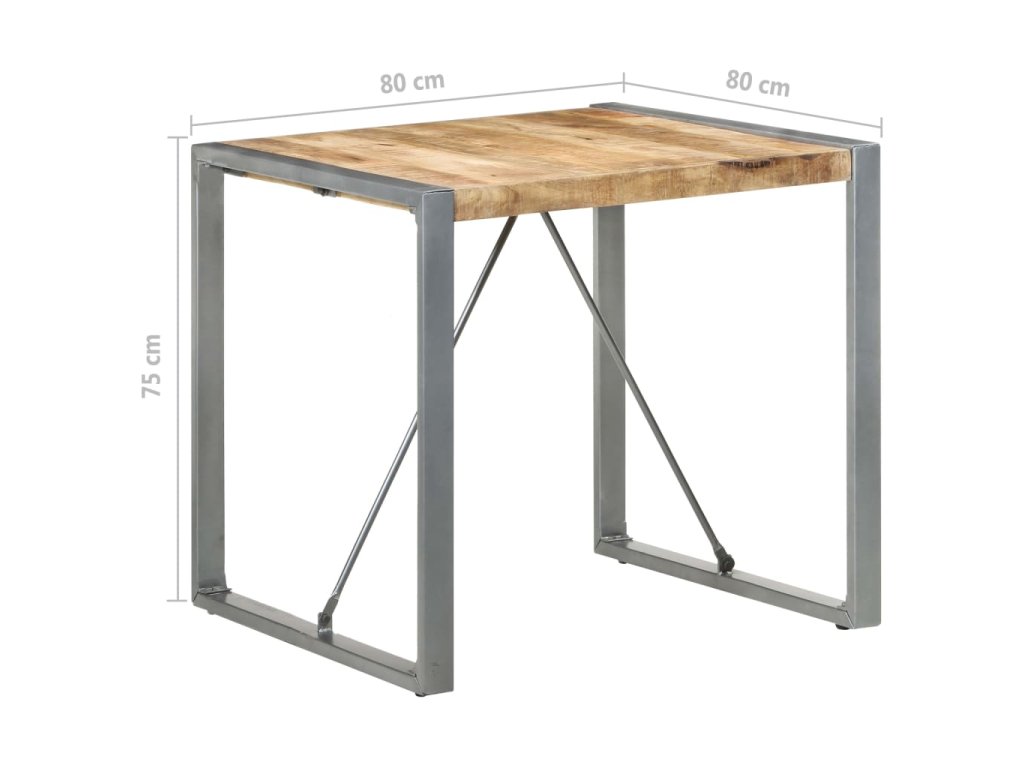 Jedálenský stôl je vyrobený zo surového mangového dreva, vďaka čomu je skutočne stabilný a trvácny. Mangový masív je drevo tropického listnatého stromu, ktoré je dostatočne pevné na to, aby unieslo aj značnú váhu, no zároveň odoláva každodennému opotrebovaniu. Vďaka remeselnému opracovaniu a krásnej textúre dreva je každý kus nábytku jedinečný a trochu odlišný od ostatných. Pevné oceľové nohy s práškovou povrchovou úpravou stolu dodávajú extra stabilitu.