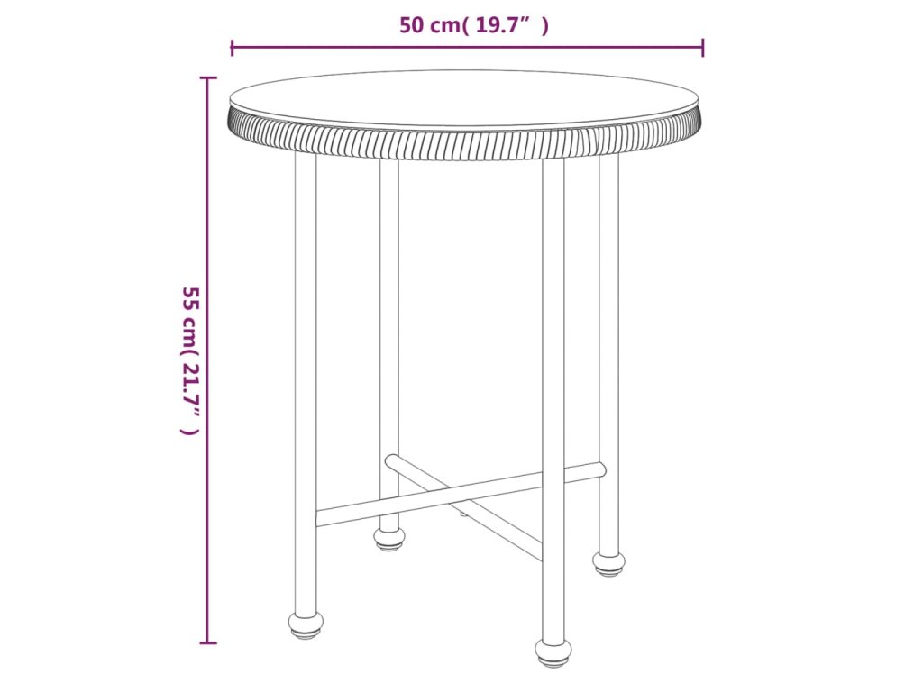 - Rozmery dosky stola: 50 x 0,5 cm (priemer x V)