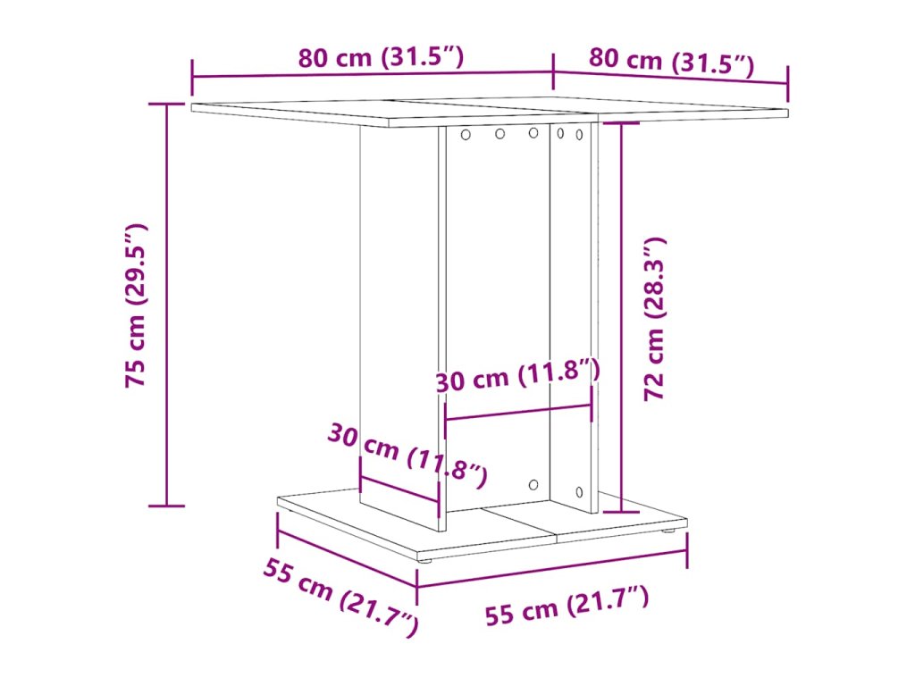 - Štvorcová základňa: Tento kuchynský stôl so širokou štvorcovou základňou je mimoriadne stabilný a pevný.